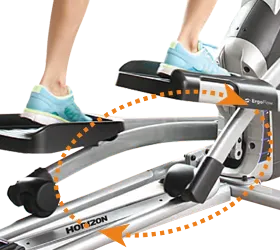 - FLATellipse™. Технология, непосредственно отвечающая за траекторию движения. Вобрала в себя лучшее от предыдущих решений в биомеханике эллипсов Horizon - биорадиус PerfectStride™ и изменяемые оси A.P.S.™. FLATellipse™ объединяет в себя биомеханически выверенные движения педалей, правильную эргономику расположения стоп относительно педалей, оптимизированные относительно друг друга длина шага и положения педалей. Важной особенностью FLATellipse™ является сохранение одинаковой нагрузки на всем цикле движения (отсутствуют т.н. "мертвые зоны").
