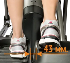 - SUREstep™. Низкая высота стартового положения. Для того, чтобы занять стартовое положение, надо подняться всего лишь на 24.5 см. Это не только удобно для пользователей невысокого роста либо старшего возраста, но и снижает вероятность травмирования при аварийных остановках. Кроме того, низкая высота стартового положения обеспечивает бОльшую устойчивость тренажера.