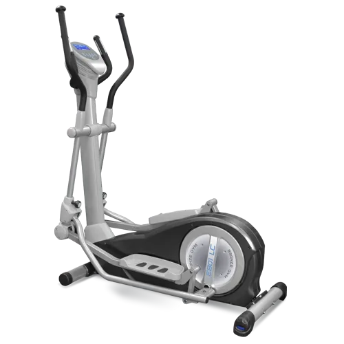 Bronze Gym E801 LC - полупрофессиональный эллипсоид, ориентированный как на клубы со сравнительно невысокой проходимостью, так и на тех домашних пользователей, кто требует от тренировки максимальной эффективности. Электромагнитная приводная система высшего класса (EMS), утяжеленный сбалансированный маховик с инерционным весом 24 кг. и дисковый трехкомпонентный педальный узел обеспечивают великолепный мягкий ход. Угол наклона (и связанная с ним длина шага) регулируется механически в 3-ех положениях, при этом длина шага изменяется в диапазоне от 455 до 530 мм. Такая вариативность позволяет настроить под себя оптимальную длину шага и придать дополнительный акцент нагрузке тех или иных групп мышц. Система нагружения поделена на 16 уровней с широким диапазоном от 10 до 680 Ватт. Навигационная часть представлена многофункциональной голубой LCD консолью диагональю 14 см. с профилем тренировки. В число программ входят 4 предустановленных тренировочных профиля, случайная тренировка, фитнес-тест, 4 пользовательских, 4 пульсозависимых режима (60%/75%/85%/THR), несколько режимов жироанализатора Body Fat (телосложение BodyType, индекс массы тела BMI, индекс метаболизма BMR). Максимальный вес пользователя - 160 кг.