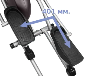 По своим остальным характеристикам тренажер вплотную приближается к эллипсоидам премиального уровня - запатентованная приводная система высшего класса (EMS) с технологическим блоком magicFLOW™ FRONT PLUS, состоящим из утяжеленного сбалансированного маховика весом 10 кг. и инерционной нагрузкой 22 кг., трехкомпонентного дискового педального узла с реверсивным ходом, многожильного кевларового ремня и преднатяжителя, а также трех внутренних высококачественных впрессованных подшипников. Каркасная часть тренажера спроектирована известным тайваньским бюро Sportech E.L., разрабатывающим эллиптические рамные конструкции для ряда ведущих мировых брендов профессионального уровня. Длина шага составляет 401 мм. - этого вполне достаточно для комфортной и эффективной тренировки. Благодаря заимствованию различных запатентованных решений от тренажеров клубного уровня, OXYGEN FITNESS™ EX-35 FD HRC+ выдерживает пользователя весом до 150 кг. Кроме того, здесь есть функция складывания - она позволяет существенно уменьшить площадь хранения.