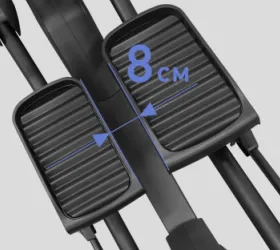 Помимо надежной высокотехнологичной системы нагружения, FORCE E750 обладает рядом других важных преимуществ. Безусловно, важна рама - иначе тренажер просто не выдержит высокоинтенсивных нагрузок. FORCE E750 построен с использованием сварного профиля максимальной прочности (Ultra Heavy Gauge Steel). Именно поэтому нетто вес изделия составляет внушительные 116 кг, а максимальный вес рассчитан на пользователей до 200 кг. Педальный узел состоит из трехкомпонентного супернадежного литого шатуна с использованием высококачественных подшипников шведской SKF, это существенно увеличивает общую надежность тренажера. С точки зрения биомеханики рама также превосходно справляется со своими задачами. Длина шага 54 см достаточна для комфортной эффективной тренировки. Расстояние между педалями (супермалый Q-Фактор E.S.Q.F. ) составляет 8 см.