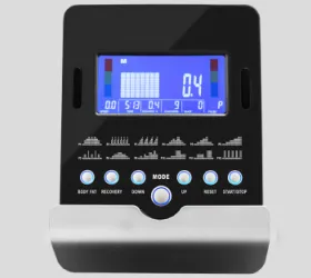 Тренировочный компьютер представлен ярким буквенно-цифровым LCD-дисплеем диагональю 14,5 см. В программный пакет входит 11 предустановленных программ. Они ориентированы на развитие таких качеств как выносливость, сила, помогают сбросить лишний вес и просто держать организм в тонусе. Для тренировок с контролем пульса запрограммировано 4 пульсозависимых программы (55%, 75%, 90% и целевая). Кроме того, здесь есть полностью регулируемая пользовательская программа и ручной режим. Для точного определения пульса и просто комфортной тренировки в компьютер встроен высокоточный беспроводной телеметрический приемник (для считывания частоты сердечного ритма рекомендован нагрудный ремень-передатчик PolarT34).