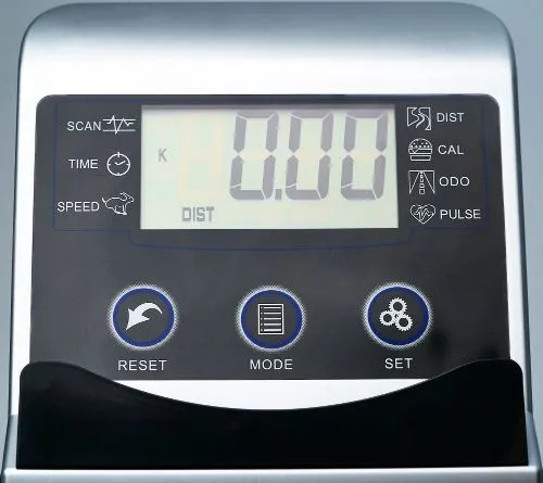 Показания консоли: время, скорость, расстояние, калории, пульс, ODO