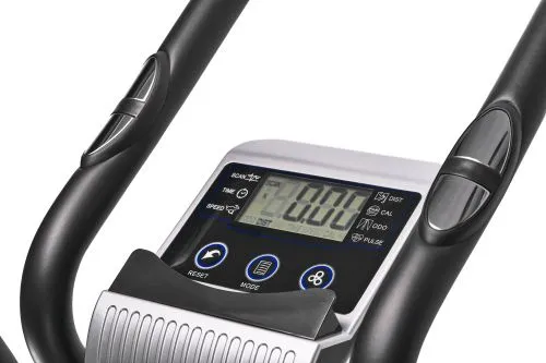 На руле расположены 2 датчика пульса с отображением показаний на дисплее консоли. Как правило, встроенные на тренажерах датчики имеют погрешность измерения. Поэтому для более точного определения частоты сердечных сокращений (ЧСС) рекомендуем использовать нагрудный кардиопояс с часами - монитором, модель DFC W117 (опция, приобретается отдельно).
