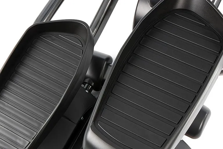 Дисплей консоли оснащен большим графическим LED дисплеем с приятным голубым цветом свечения светодиодов. Также на консоли расположен однострочный цифровой LED дисплей на 21 знак с янтарным свечением и светодиодные индикаторы порогового пульса. Обратим внимание на программное обеспечение, ничего лишнего, а именно: 10 основных высокоэффективных тренировочных программ (ручной режим, интервалы, «качели», сжигание жира, фит-тест Института Купера, 1 случайная, 1 Ватт-фиксированная, 2 пульсозависимые). Расстояние между педалями и длина шага соответствуют эргономичному расположению.