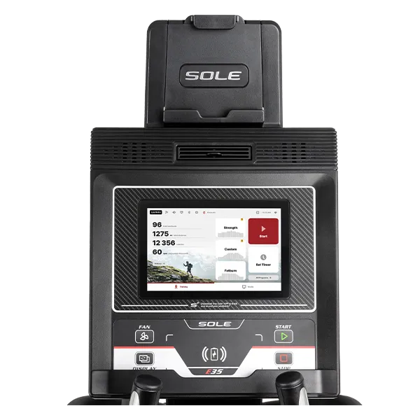 В E35 теперь встроен держатель для планшета, чтобы вы могли использовать свои интеллектуальные устройства для просмотра передач или выполнения упражнений. Также в комплект поставки входят аудиоколонки Bluetooth, чтобы вы могли слушать музыку.