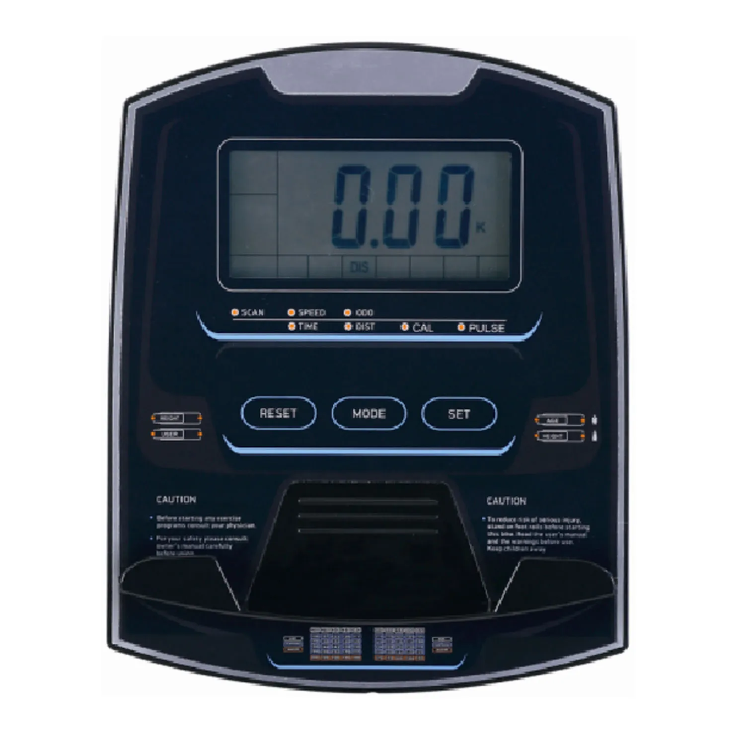 время, расстояние, скорость, калории, пульс |