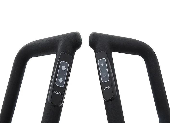 Эллиптические тренажеры SPIRIT разработаны таким образом, чтобы пользователь мог легко регулировать сопротивление во время тренировки, с помощью кнопок изменения нагрузки, интегрированных в подвижные поручни.