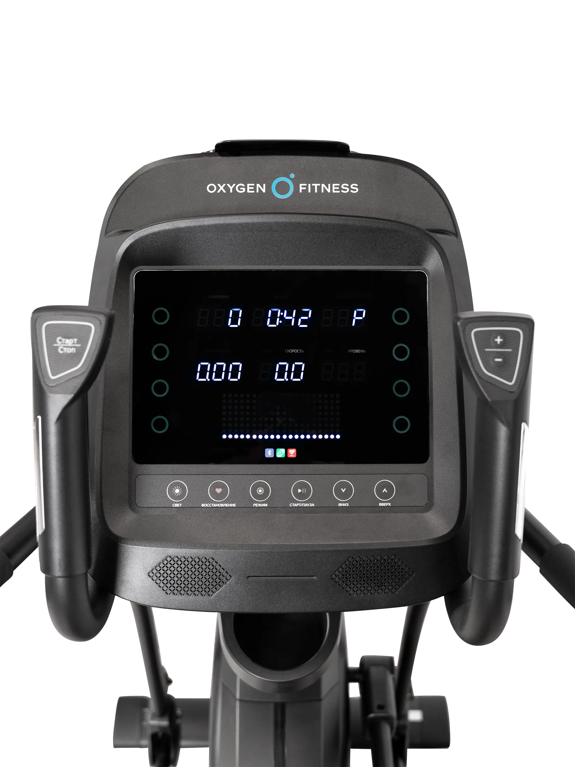 время, скорость, дистанция, пульс, уровень нагрузки, калории, программа, Ватты, количество шагов, общая дистанция |