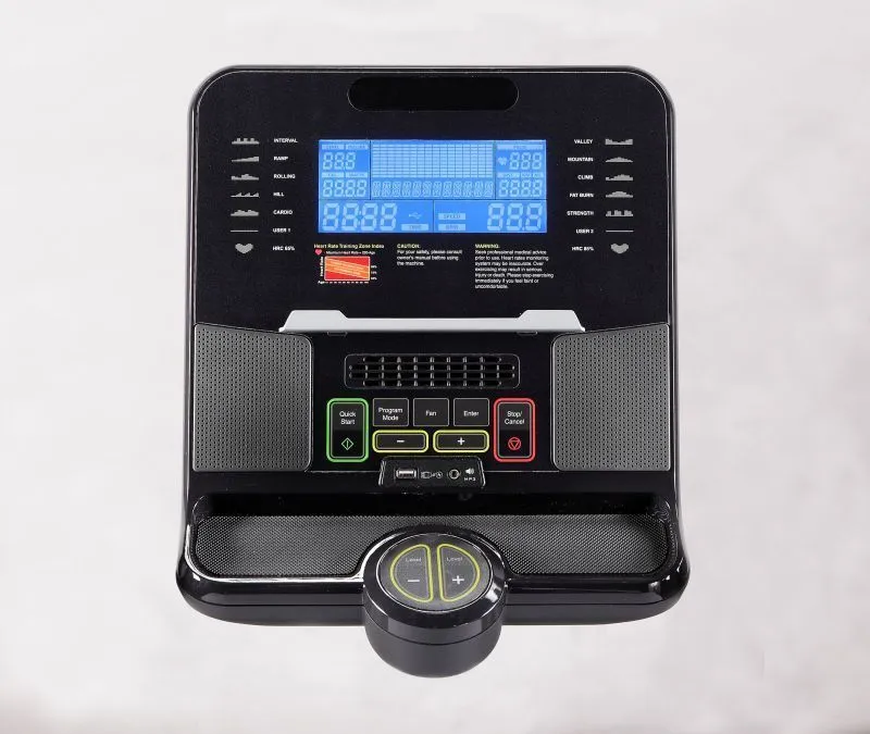 Жидкокристаллический LCD дисплей с голубой подсветкой: LEVEL/INCLINE (Уровень/Наклон), PULSE(HEART RATE) (Пульс/ЧСС), CALORIES (Калории), WATTS (ВАТТ/Мощность), DIST./KML (Дистанция/КМ), TIME (ВРЕМЯ), RPM (Обороты в минуту), SPEED (СКОРОСТЬ).Длина шага, мм: 560