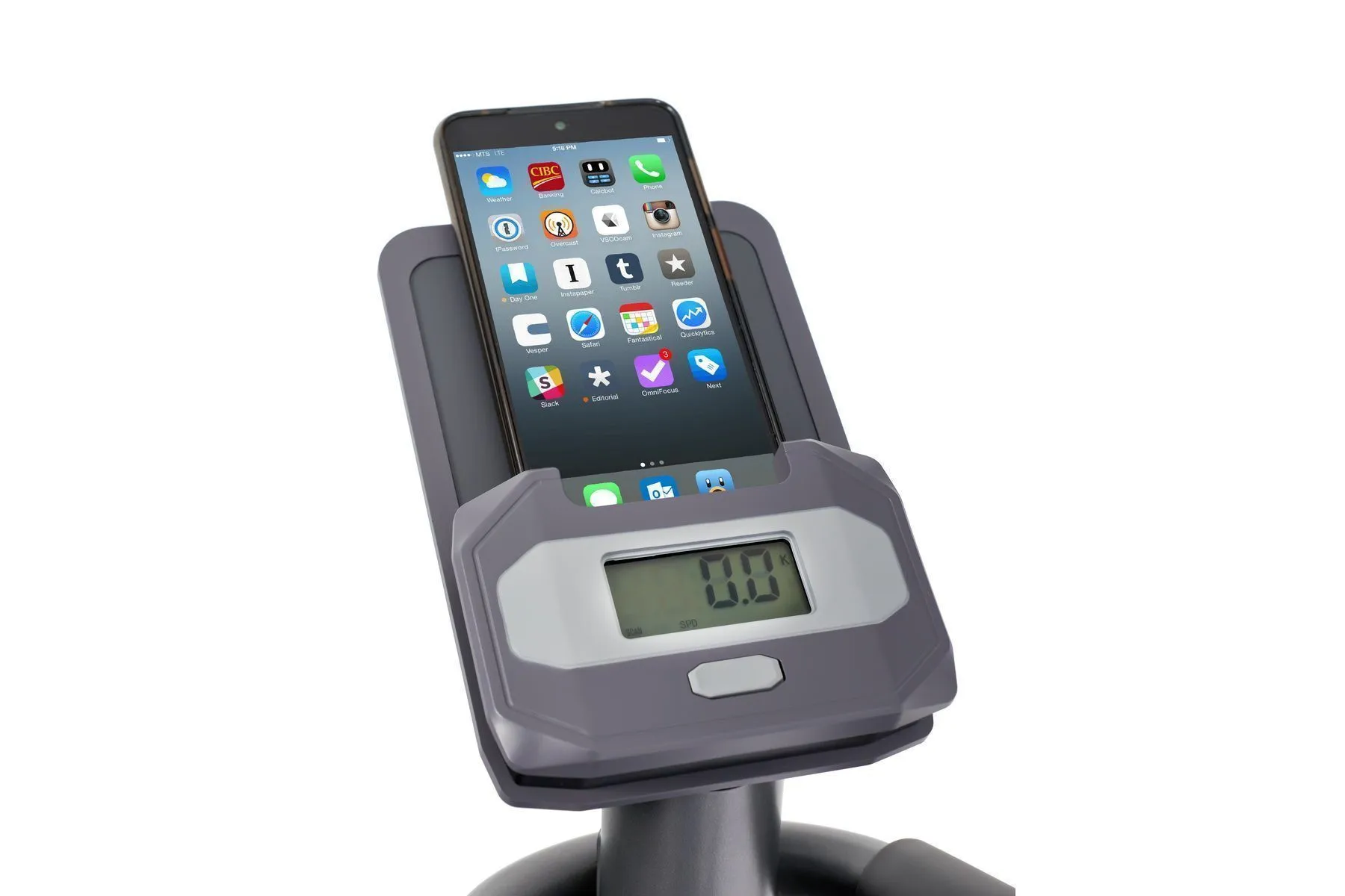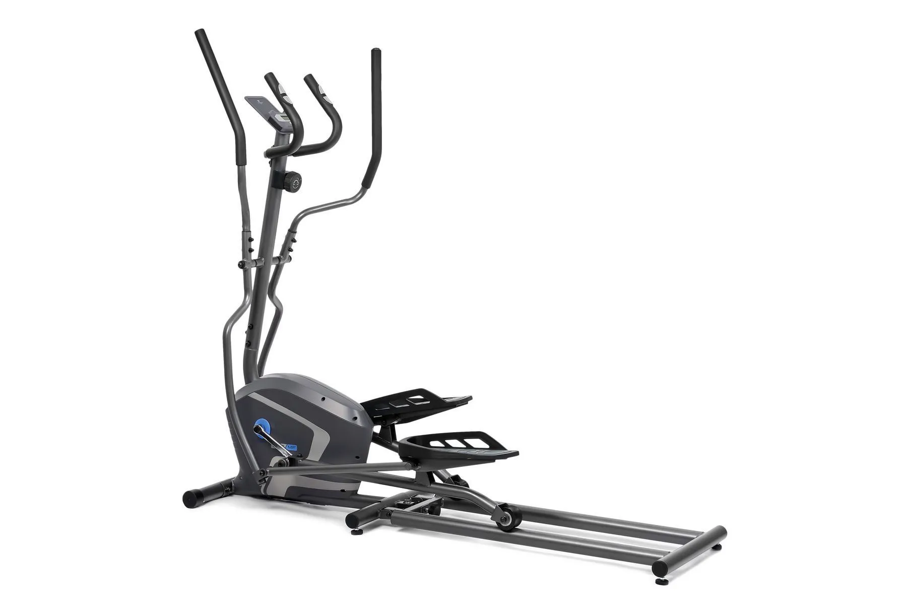 Тренировочный компьютер представлен черно-белым LCD-дисплеем с удобной подставкой под смартфон или планшет. На экран выводятся все основные параметры тренировки - время, дистанция, скорость, калории, обороты в мин. и пульс. Измерение пульса происходит путем удержания ладоней на сенсорных датчиках пульса, расположенных на поручнях. Нагрузка регулируется механическим путем в 8 положениях. К числу дополнительных характеристик эллипсоида относятся такие опции как транспортировочные ролики и компенсаторы неровностей пола. Переместить изделие из одного места в другое не составит большого труда, а компенсаторы позволят отрегулировать положение ножек на неровной поверхности.
