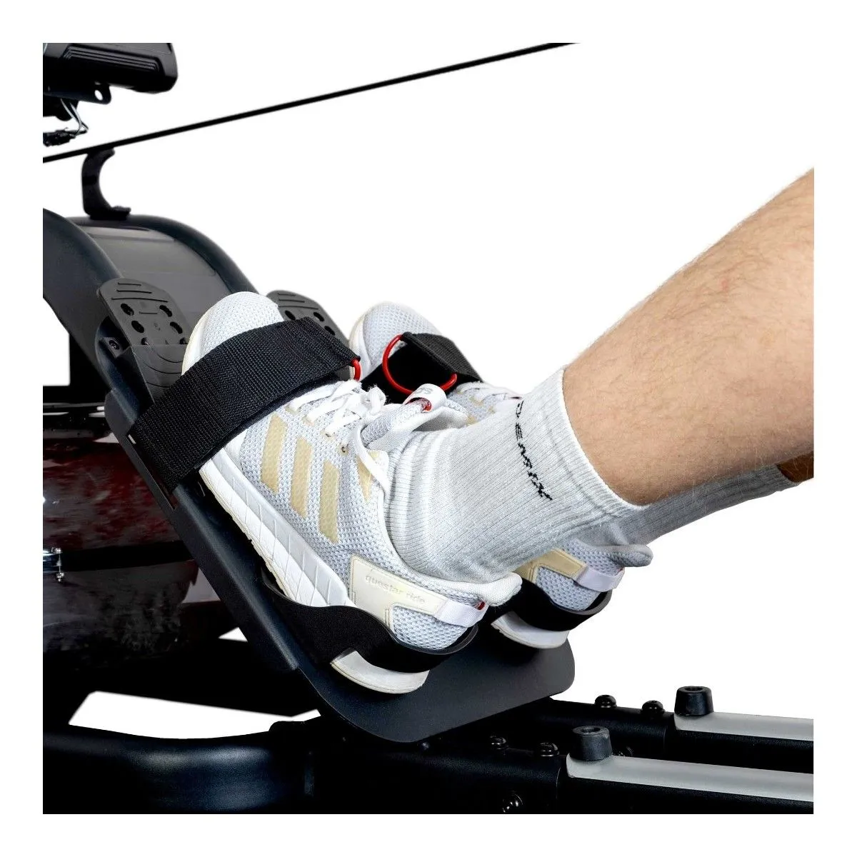 Большие антискользящие подставки для ног с ремешками, которые надежно фиксируют любую спортивную обувь, легко регулируются под размер ноги. Удобное для бедер расстояние между шаговыми пластинами - 10 см.