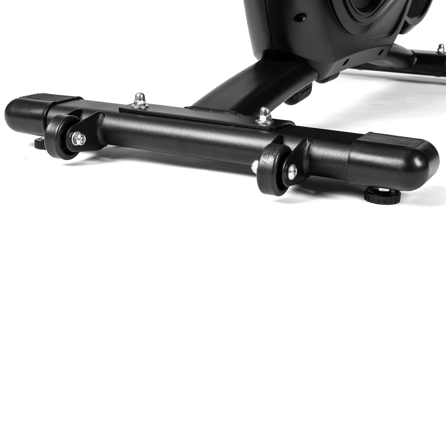 Компенсаторы неровности пола обеспечивают устойчивость даже при интенсивных нагрузках, а транспортировочные ролики делают перемещение тренажёра лёгким и удобным. Подставка для планшета позволяет смотреть видео или слушать музыку во время тренировки.