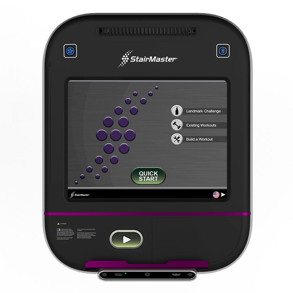 Степпер 8FC от бренда StairMaster — это профессиональная модель для активной проработки мышц бедер и ягодиц. При производстве тренажера производитель учел все потребности спортсменов: от возможности задавать солидные нагрузки, не боясь за безопасность суставов, до полного погружения во время тренировки в мир мотивационных развлечений, предоставляемых современным дисплеем бортового компьютера.