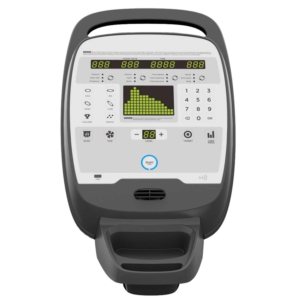 Буквенно-цифровой информационный светодиодный LED-дисплей отображает: время тренировки в диапазоне от 00:00 до 99:59 секунд, пройденное расстояние от 0 до 99,9 км, израсходованные калории, количество шагов в минуту, скорость от 0 до 100 км/ч (шаг равен 0,1 км/ч), интенсивность в диапазоне от 1 до 20, частоту сердечных сокращений.