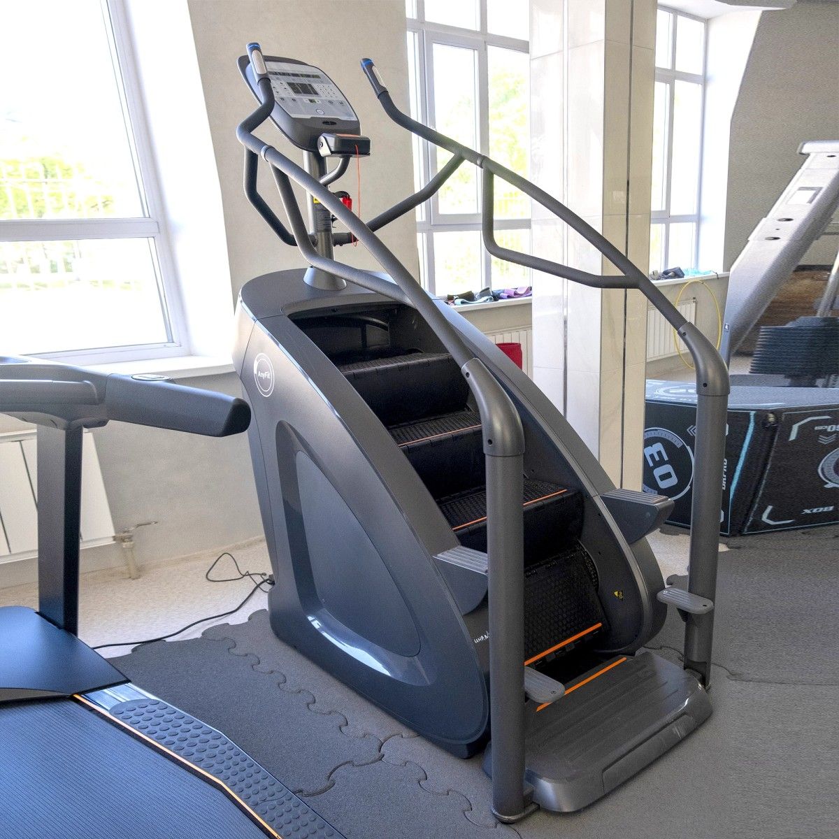 Лестничный тренажер Stairmill AnyFit AI-3 оснащен технологией интеллектуального управления тренировками. Это позволяет организовывать комбинированные тренировки, придерживаться их плана, тем самым получать больше удовольствия и пользы от занятий на тренажере AnyFit.