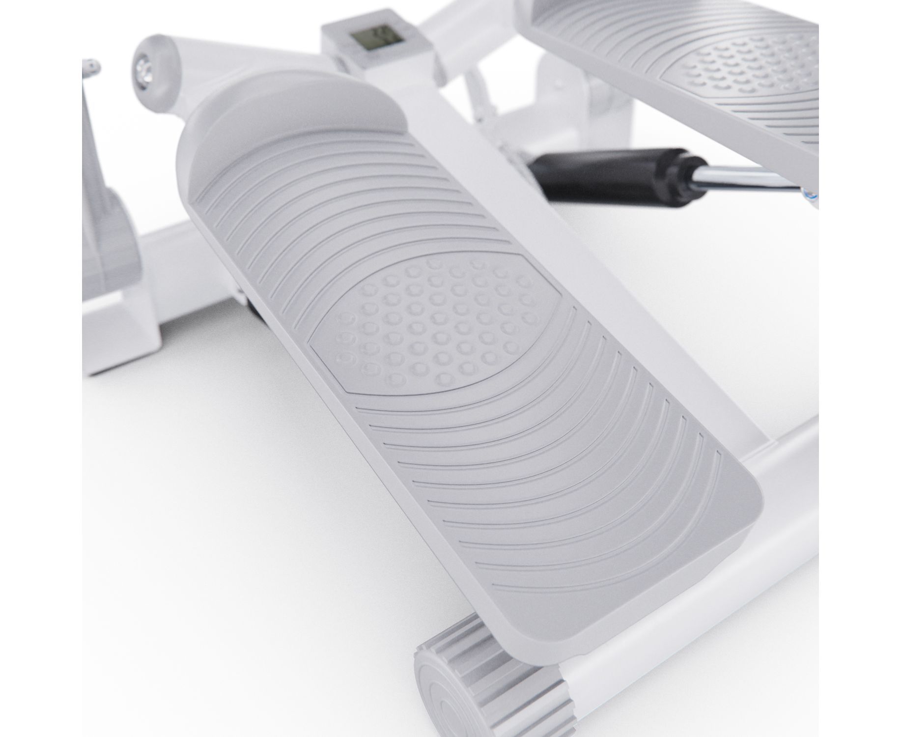 Министеппер оснащён рифлёными педалями, которые обеспечивают комфорт и стабильность при каждом движении. Небольшое расстояние между педалями способствует правильному положению ног и помогает снизить нагрузку на суставы. Благодаря регулируемой высоте педалей можно легко менять интенсивность занятий и адаптировать тренировку под свой уровень подготовки.