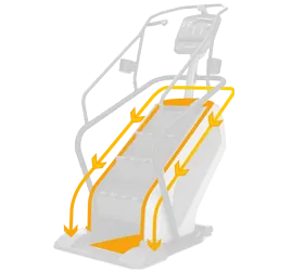 БИОМЕХАНИКА. Применительно к лестницам-эскалаторам, биомеханика скорее подразумевает связку "удобство использования + безопасность". Во-первых, размеры лестницы оптимизированы для пользователей практически любой комплекции. Даже если ноги "растут от ушей", рабочей зоны будет достаточно для комфортного использования на любых скоростях. Во-вторых, расположение рукояток и поручней максимально удобно, и, что очень важно, дает ощущение устойчивости на тренажере. В-третьих, во время подготовки к старту или паузы движение ступеней блокируется. Блокировка также происходит в случае, если пользователь сошел с лестницы или в проемы ступеней попал инородный предмет (шнурок от обуви, к примеру).