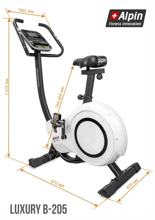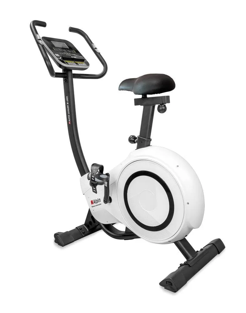 Велоэргометр ALPIN Luxury B-205 большой комфортабельный тренажер, усиленная конструкция рамы в состоянии выдержать вес пользователя до 150 кг. Плавный ход, бесшумная передача вращающего момента от педалей к маховику обеспечивается приводной системой высшего класса с технологическим блоком, состоящим из утяжеленного сбалансированного маховика весом 12 кг., трехкомпонентного педального узла, многожильного ремня и преднатяжителя, а также трех внутренних высококачественных впрессованных подшипников. Педали с регулируемыми ремнями настраиваются практически под любой размер стопы. Легко регулируемое в горизонтальной и вертикальной проекциях хромированное сидение повышенной комфортности позволяет проводить тренировки с максимальной эффективностью и удобством.