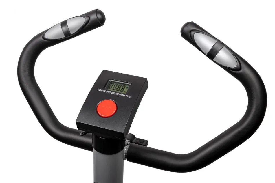 За показатели пульса отвечают вмонтированные в рукоятки сенсорные датчики пульса. Велотренажер удобно перемещать благодаря малому весу, а точное горизонтальное положение обеспечивают компенсаторы неровностей пола на задней опоре. Черно-белый LCD-дисплей выводит на экран различные параметры тренировки - время, дистанцию, скорость, пульс. Конструкция рамы рассчитана на комфортную тренировку пользователей ростом до 165 см и весом до 100 кг. Расширенная гарантия - 2 года.
