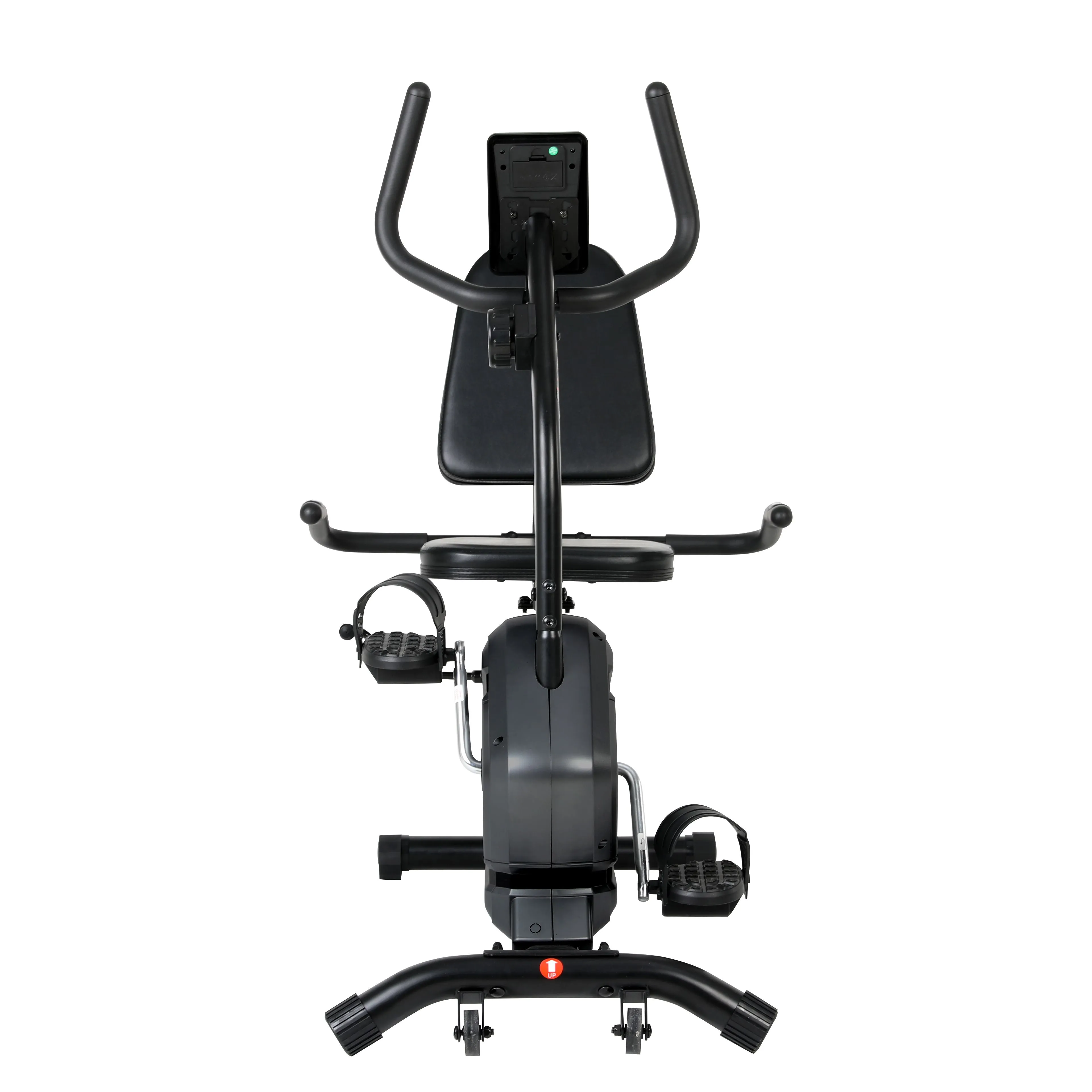 Легко читаемый монохромный дисплей отражает на экране все важные параметры тренировки: дистанцию, скорость, время, пульс и калории. Для комфорта при длительных тренировках велотренажер имеет удобное эргономичное сиденье и спинку с быстрой регулировкой по вылету. Помимо этого, предусмотрены специальные регулируемые ремешки, для удобного крепления стопы любого размера. Благодаря компенсаторам неровностей пола тренажер легко выровнять на любой поверхности, а за счёт специальных транспортировочных роликов, его с легкостью можно переместить на место тренировки даже хрупкой девушке.