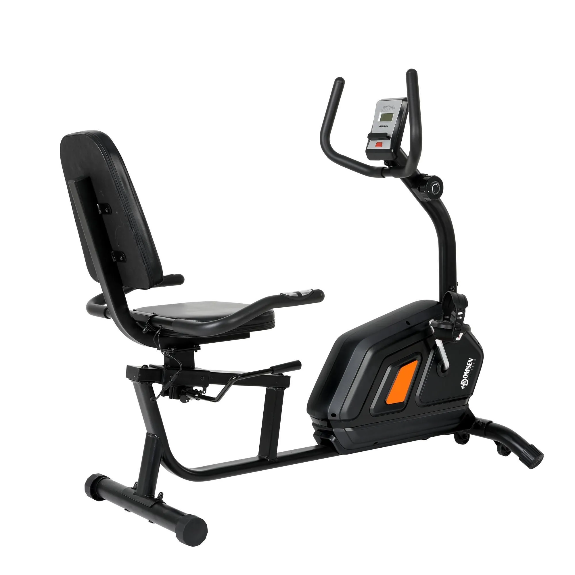 Горизонтальный велотренажер для дома Domsen Fitness DSB-350 предназначен для интенсивных домашних тренировок пользователям весом до 120 кг и ростом до 190 см. За счёт тяжелого инерционного маховика весом 8 кг и высококачественных комплектующих, создаётся приятная плавная нагрузка без рывков и провалов на любом режиме работы.