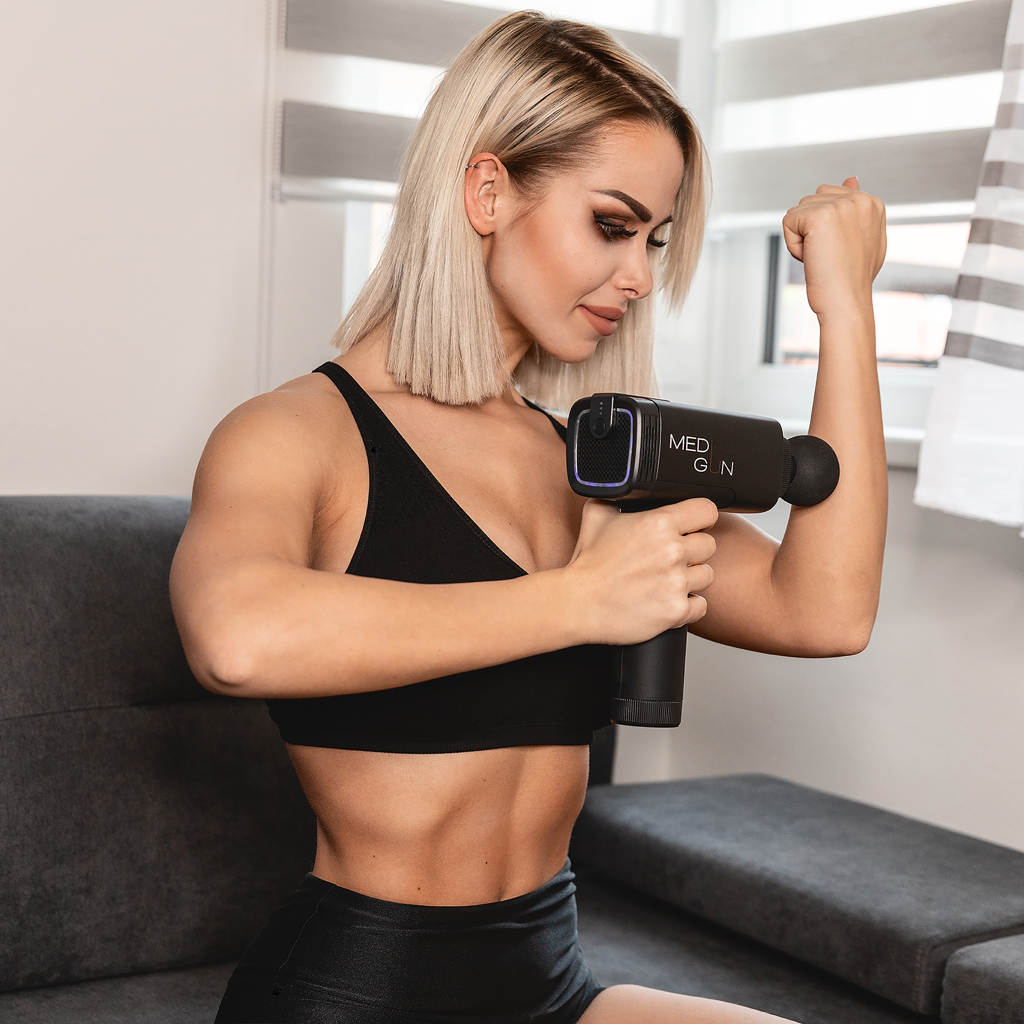 MediGun профессиональный поколачивающий массажёр Он помогает снизить уровень мышечной крепатуры и мышечного напряжения, способствует лучшей циркуляции крови, улучшает подвижность и общее состояние опорно-двигательного аппарата.