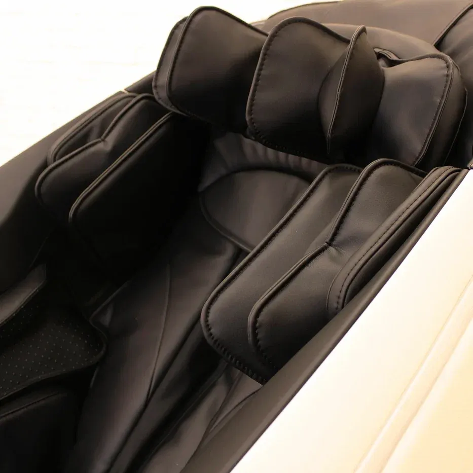 Кресло оказывает целый видовой массажный комплекс: разминание, постукивание, шиацу, похлопывание, роликовый массаж, стрейтчинг и воздушно-компрессионный.