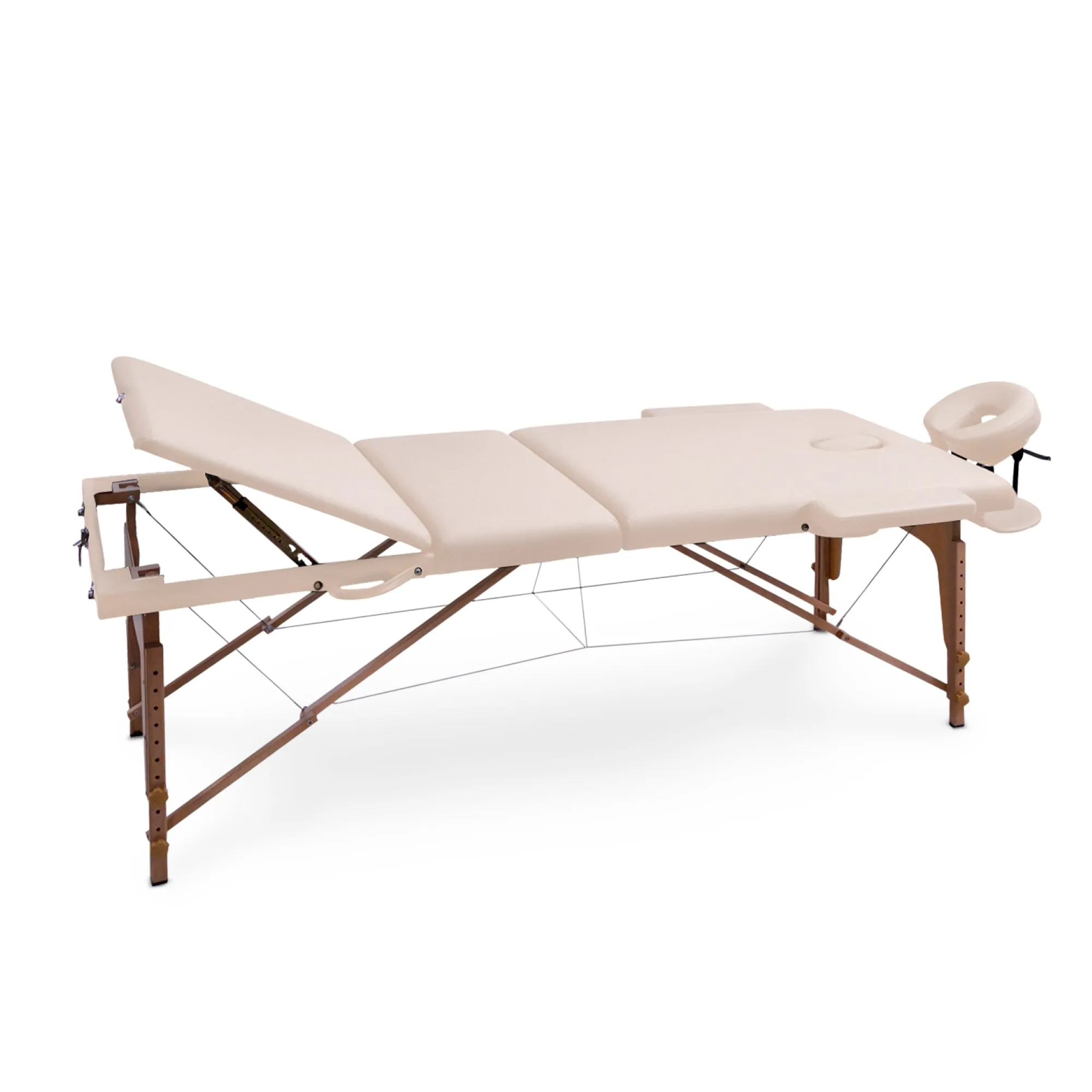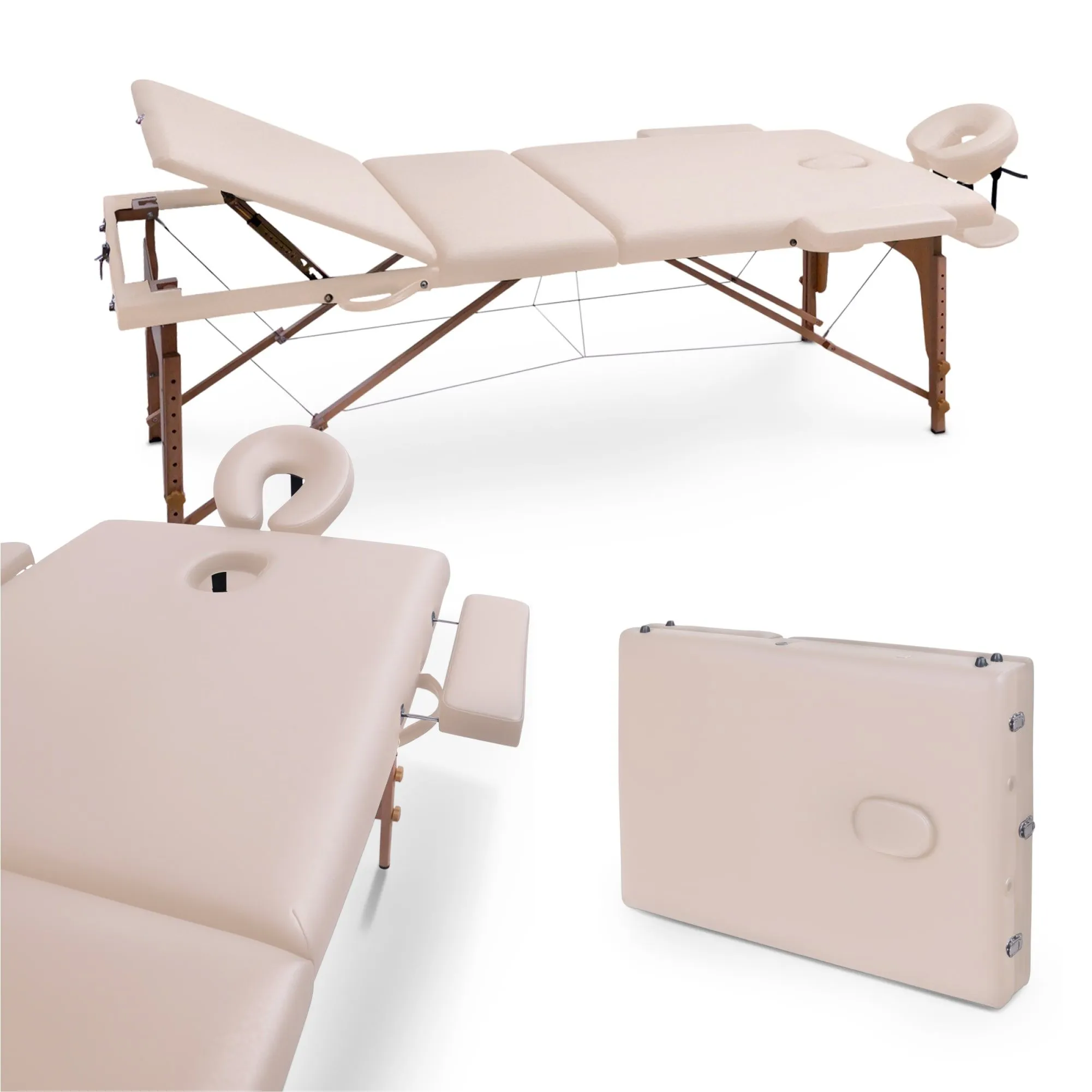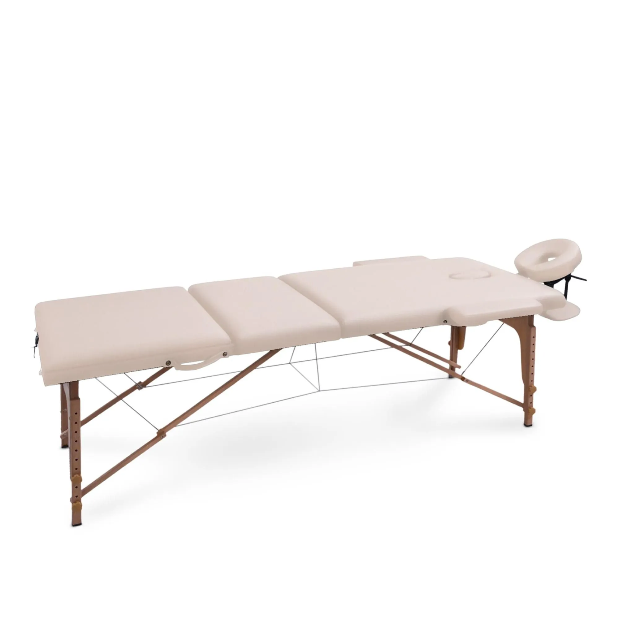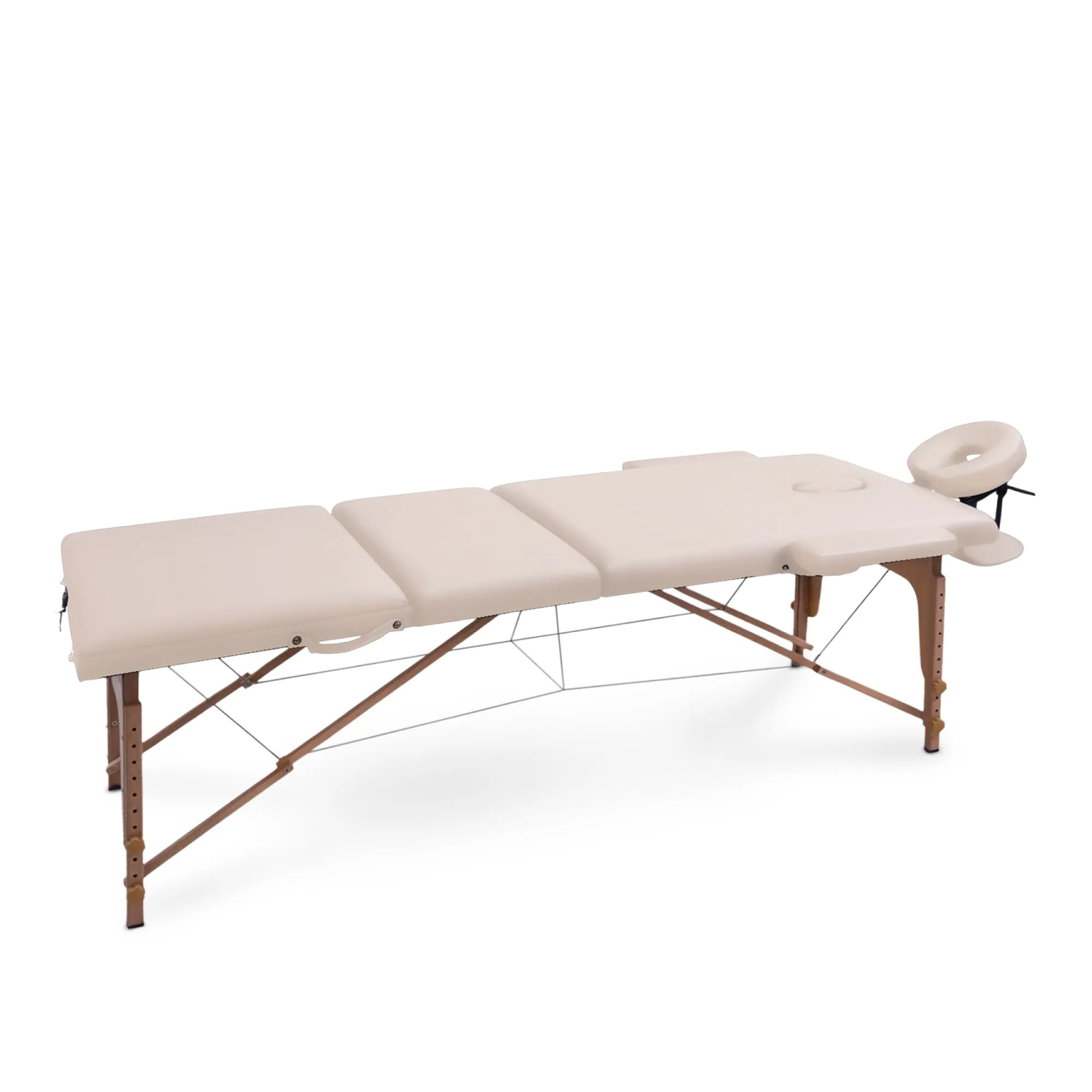 Деревянная кушетка для массажа выделяется невероятно прочной конструкцией, способной выдержать общую нагрузку до 250 кг (не перегружайте стол сверх рекомендованного предела веса). Благодаря своим компактным размерам он идеально впишется даже в самые небольшие помещения, будь то СПА-салон, домашний кабинет или офис. Возможность ручной регулировки высоты ножек от 60 до 81 см с шагом 3 см позволяет адаптировать стол под рост массажиста, обеспечивая наилучшую результативность сеансов массажа. Ложе толщиной 6 см обеспечит дополнительную поддержку и комфорт. Для еще большего удобства массажного стола в комплекте предусмотрены регулируемый по наклону и высоте подголовник и подставка для гаджетов, расположенная у изголовья, а также боковые подлокотники.
