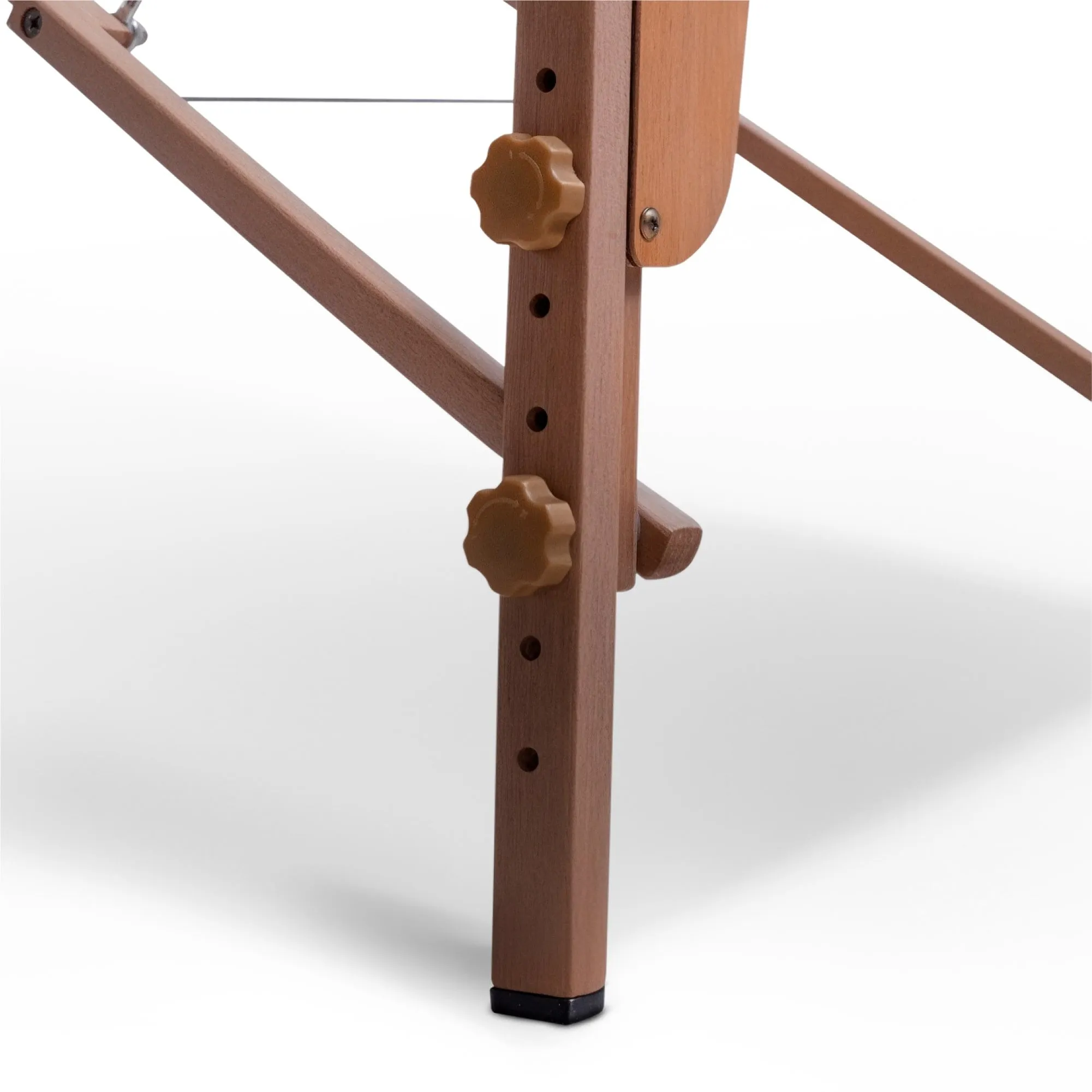 Основу каркаса и ножек составляют натуральные материалы — древесина твердых пород, покрытая безопасным лаком, что делает кушетку не только надежным, но и экологически безопасным продуктом. Усиленные ножки придают регулируемой кушетке дополнительную устойчивость, а тросы из авиационного алюминия обеспечивают надежность и долговечность. Обивка стола выполнена из высококачественной экокожи, устойчивой к воздействию влаги, масел и кремов, что облегчает уход за ним и продлевает срок службы.