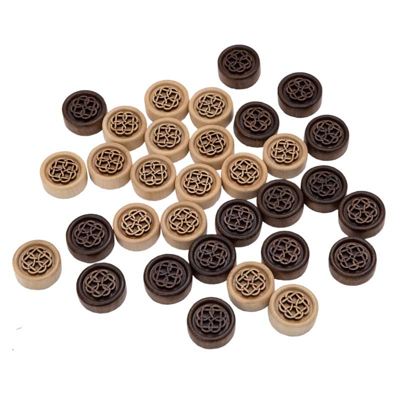 Верхняя часть украшается симметричным узором, что делает их более благородными. К нижней поверхности приклеена тканевая подкладка, обеспечивающая хорошее скольжение. Также она выполняет функцию амортизатора и не дает появиться трещинам со сколами при ожесточенных играх. Учитывая, что тут все выполняется вручную, используется качественный бук, – стоимость получается более чем оптимальной.