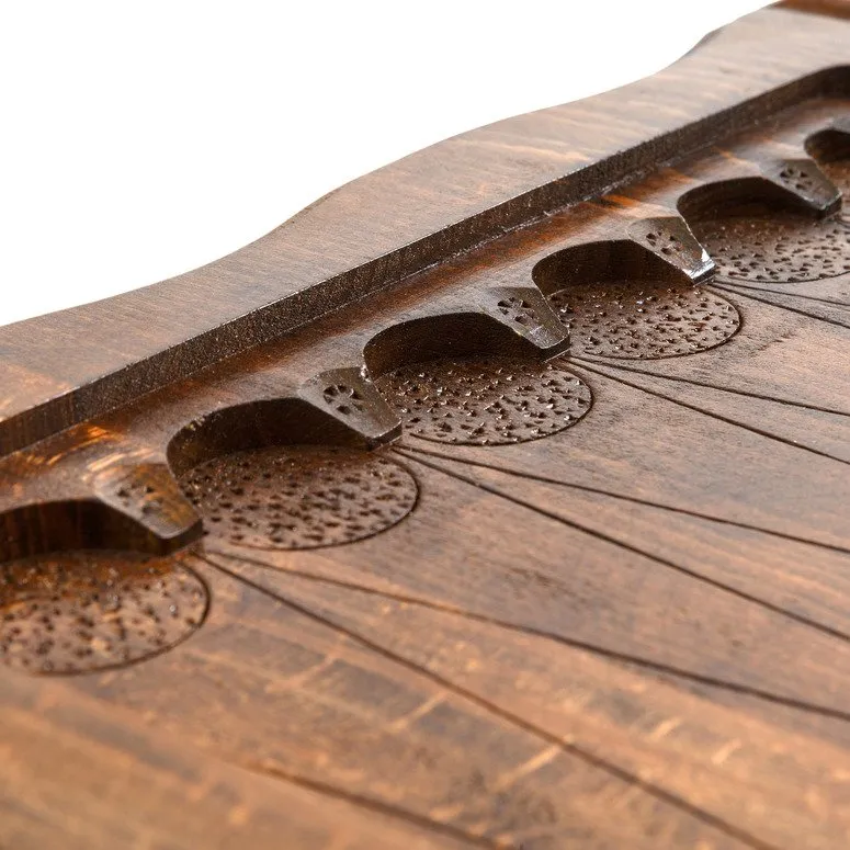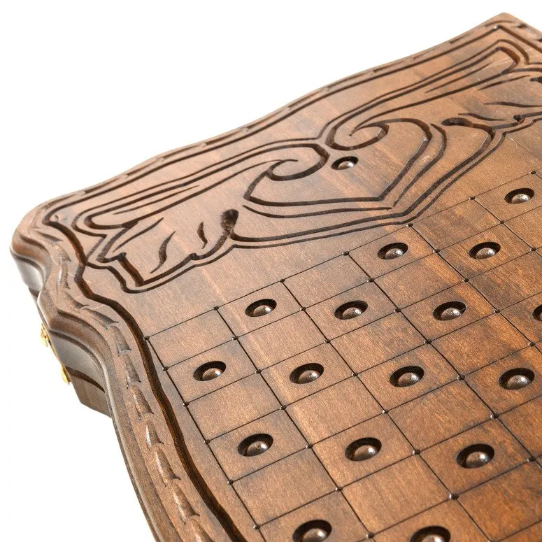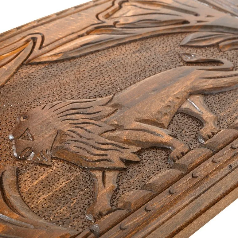 Те, кто находится в поиске оригинальной вещи ручной работы, без всякого сомнения, придут в настоящий восторг от таких необычных нард «Лев». Такая настольная игра была создана талантливыми мастерами из Армении, которые приложили максимум усилий, чтобы конечный результат просто поражал покупателей. Главной отличительной особенностью этой модели настольной игры стало изображение свирепого льва на верхней стороне доски. Такой набор непременно подойдет для сильных и уверенных в себе личностей, желающих в одночасье обыграть своего противника. А внешний вид изделия, его нарочно состаренный вид позволяет создать необычную, особую атмосферу, которая так и манит к себе.