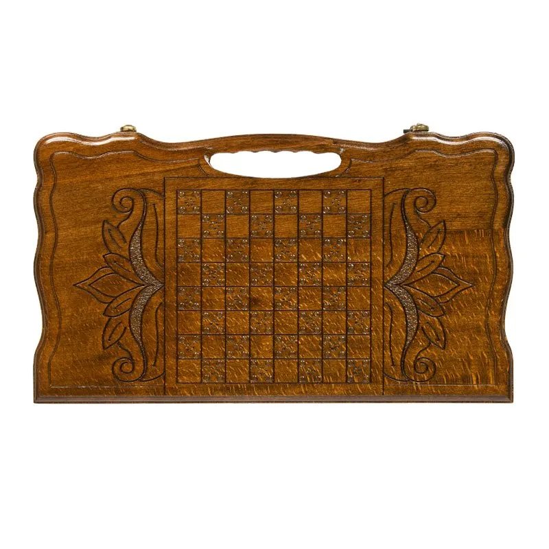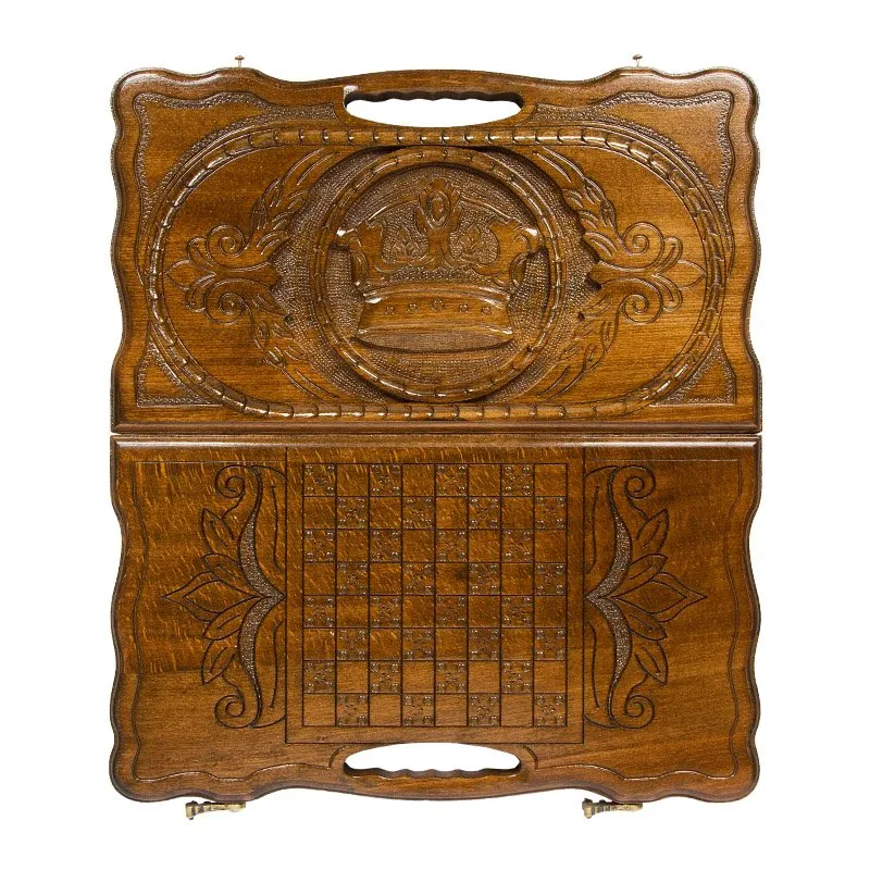 Здесь представлена доска для игры в нарды, выполненная мастером Кареном Халеяном. Он уже на протяжении десятков лет занимается изготовлением различных досок и всегда на первое место ставит – качество и изысканность. Нарды резные Корона полностью этому соответствуют, почему их можно рекомендовать к покупке не для себя самого, но и в качестве шикарного подарка. Считается, что если сделать кому-то такой , то это поспособствует в достижении успехов в работе и в семейной жизни. Также посмотрите и другие варианты малого и среднего размера.