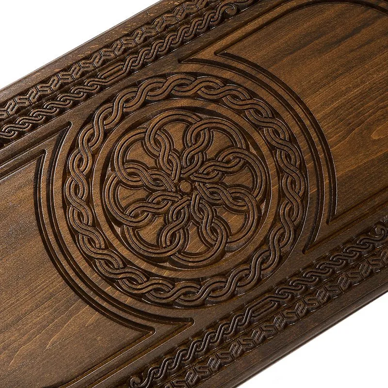 Красивая доска, созданная известным мастером из Армении Кареном Халеяном. Уже одно это может свидетельствовать, что данное изделие относится к элитному классу. Здесь все выполнено, согласно канонам изготовителя – качественные материалы, ручная резьба, продуманная комплектация.