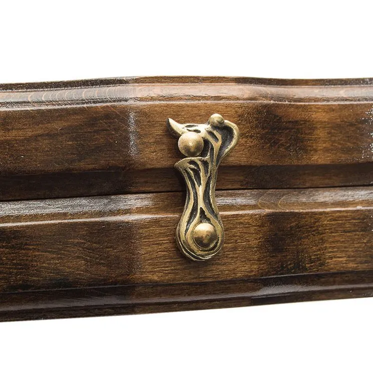 Для производства данного изделия используется древесина бука, которая аккуратно обрабатывается мастером и доводится до идеального состояния. Сама структура этого дерева обладает уникальным свойством – амортизирует при механических воздействиях. Она способна выдерживать небольшие, случайные удары и падения с высоты до 1 метра. Дополнительная защита обеспечивается посредством лакированного покрытия, не допускающего проникновения влаги внутрь структуры, что могло бы привести к деформациям. Петли и крючки из мягкой бронзы способны выдержать тысячи циклов открытия створок.