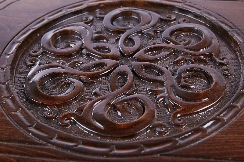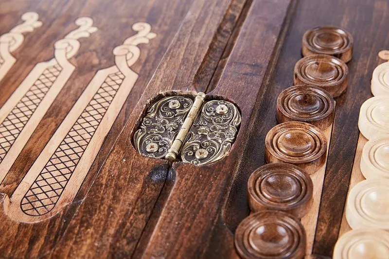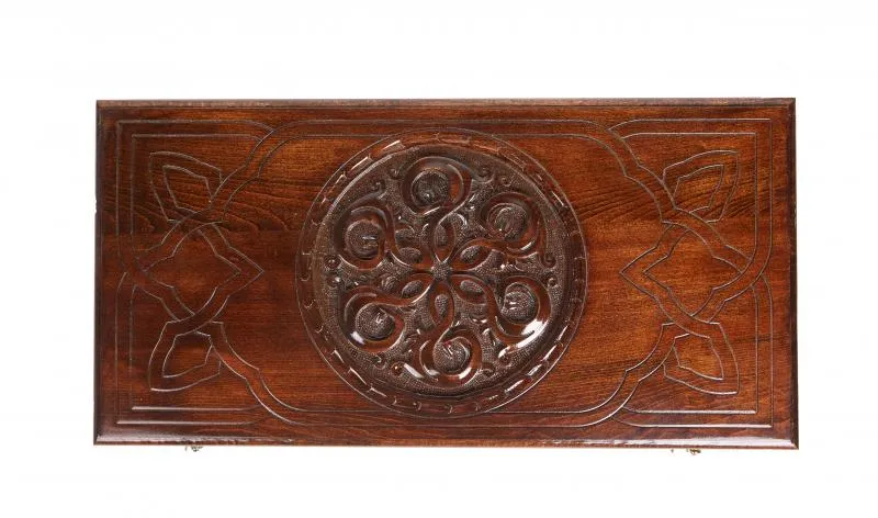 Уже при первом взгляде на нарды резные «Сияние 2» видно, что данное изделие создавалось истинным мастером. Оно сделано в Армении руками Давида Маряна из бука. Этот материал выбран благодаря своей высокой прочности и практически безграничной долговечности, к тому же, на нём легко выполнять резьбу.