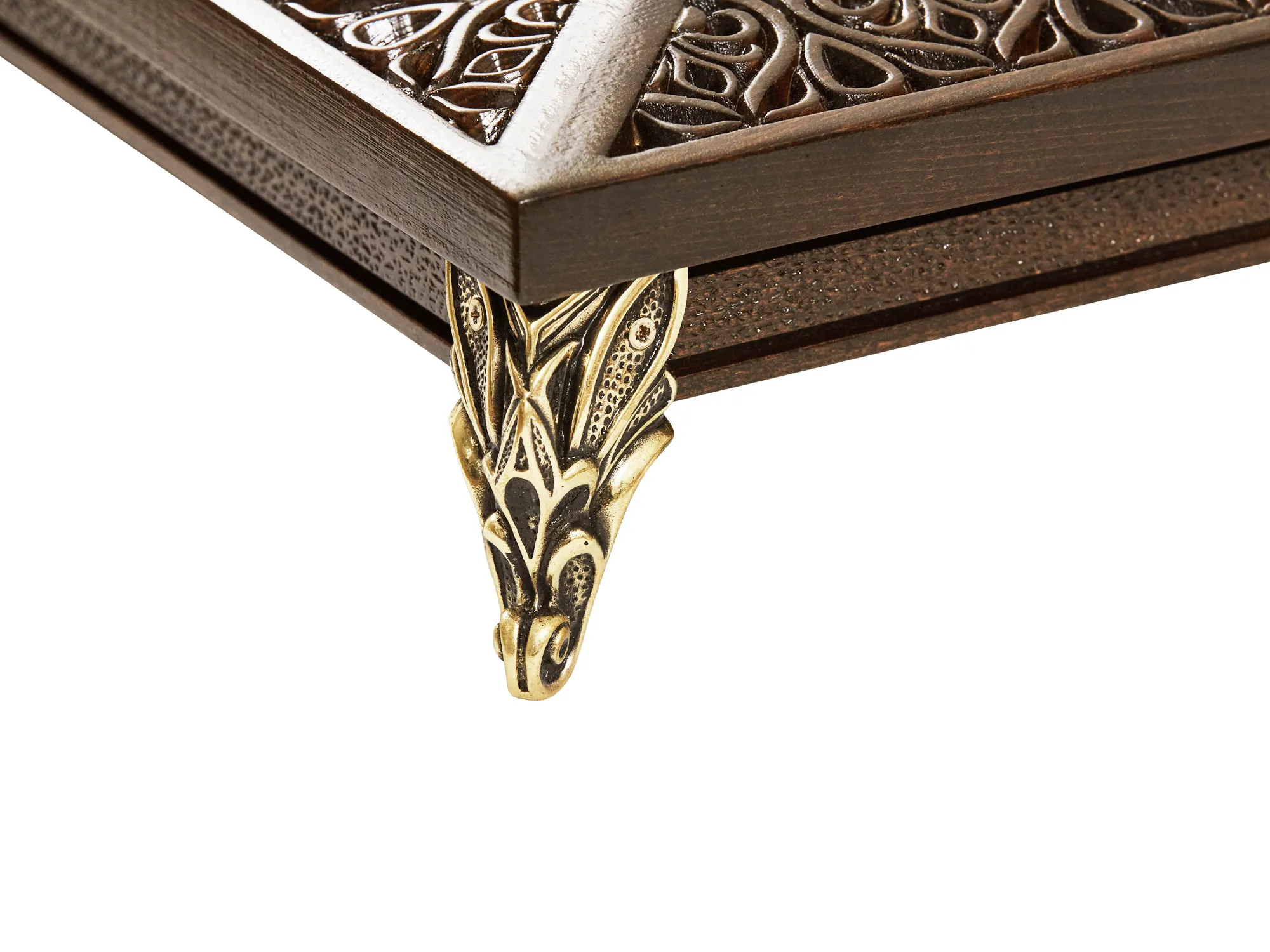 Набор шахмат «Вдохновение» – оригинальный комплект классической настольной игры, выполненный из натуральной буковой древесины, который украсит собой любой интерьер, станет его изюминкой. Цельная доска на медных ножках по бортику украшена геометричным резным узором.