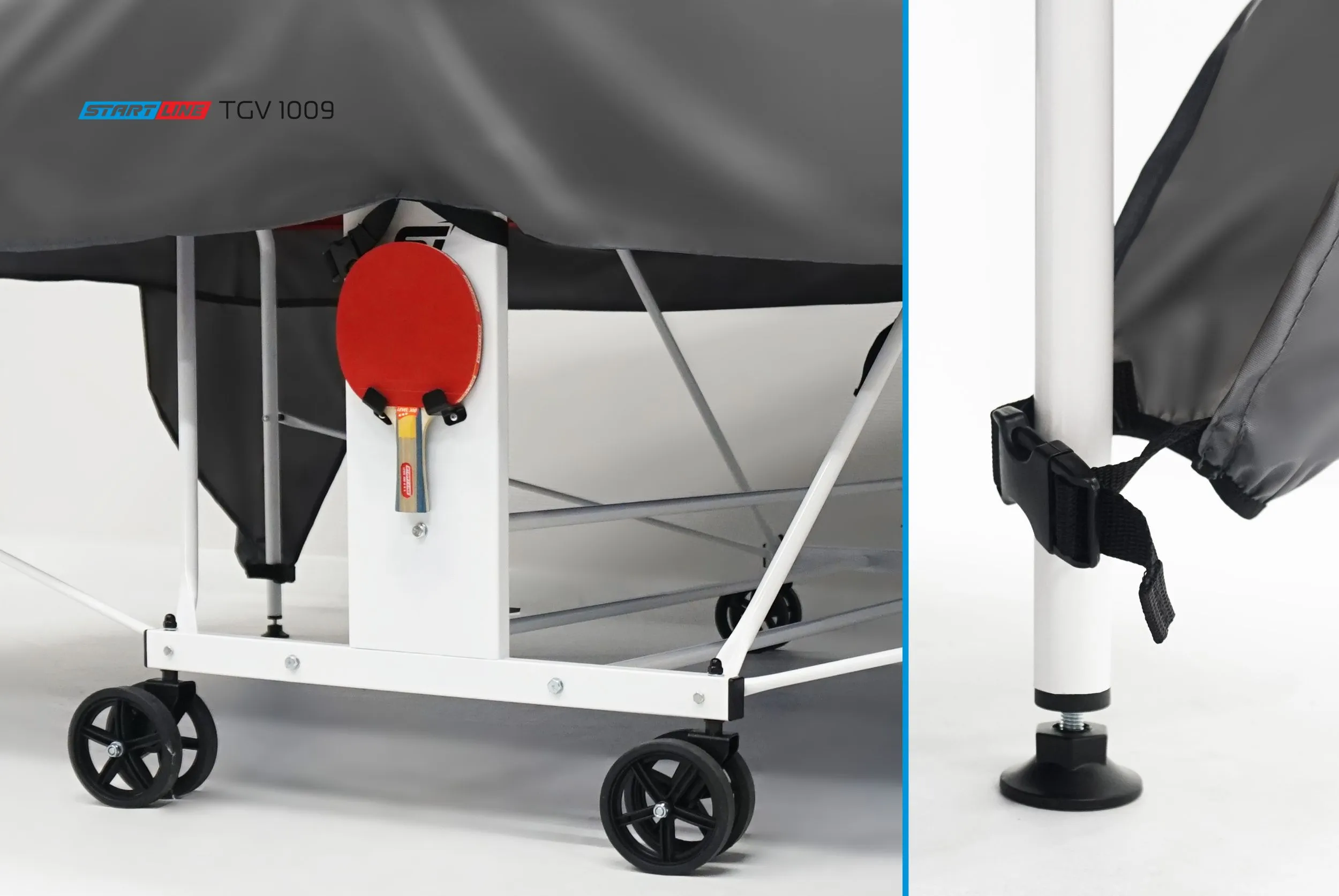 Чехол для теннисного стола 1009 сохранит ваш теннисный стол в идеальном состоянии, защищая его от воздействия влаги, механических повреждений и загрязнений. Чехол изготовлен из прочного полиэстера 3000 с полиуретановым покрытием. Такой материал обладает высокой прочностью и эластичностью. Он устойчив к истиранию и многократным сгибаниям. Это гарантирует долговечность чехла и надежную защиту стола от попадания прямых солнечных лучей, пыли и грязи. Данная модель предназначена для покрытия теннисных столов, отвечающих стандарту ITTF #40;274 х 152 х 76 см#41;. Практичный и эргономичный, этот чехол легко надевается на стол в разложенном виде, а удобная система креплений на фастексах обеспечивает надежную фиксацию чехла к ножкам стола. Чехол 1009 — это гарантия сохранения игровых качеств теннисного стола на время хранения! Важно: брендирование изделия может отличаться от образца на фотографии.