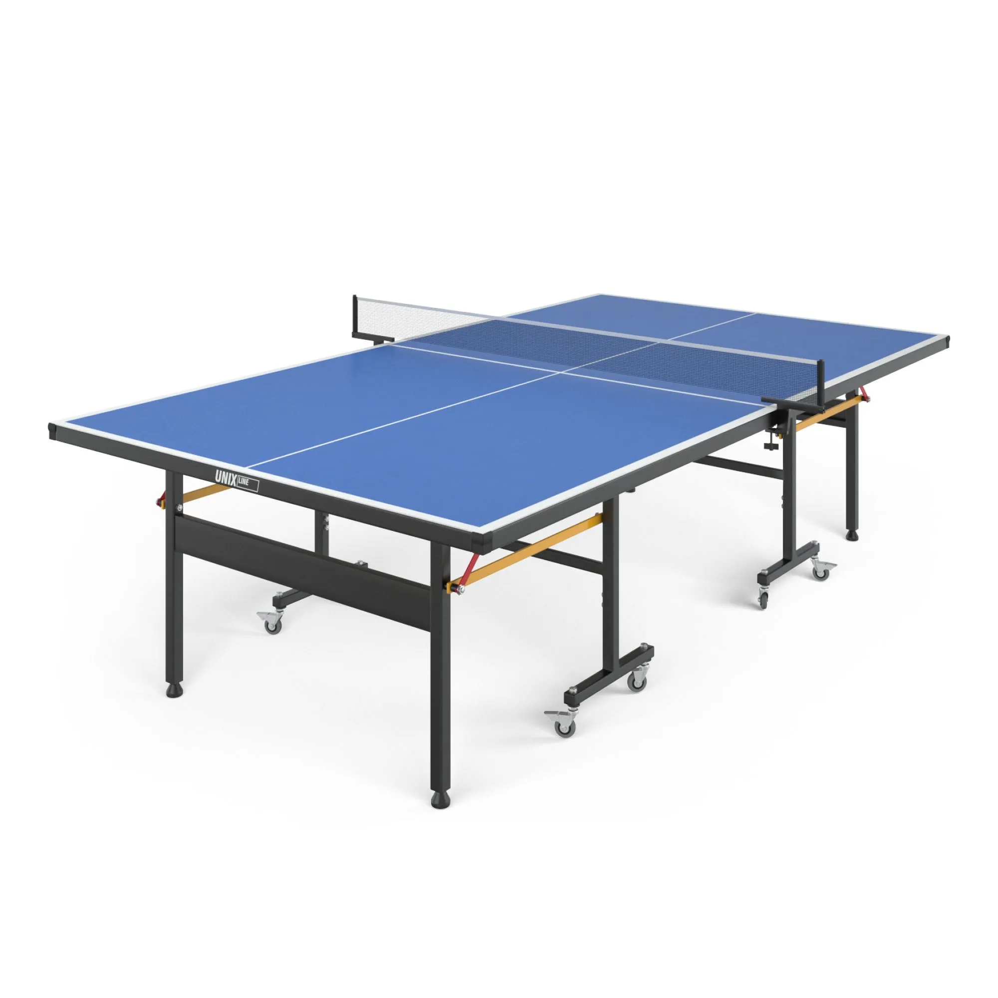 Металлическая рама теннисного стола UNIX Line имеет толщину стали 1,4 мм, размеры профилей составляют 20х40 и 40х40 мм. Благодаря таким характеристикам конструкции, теннисный стол сохраняет жесткость и устойчивость на любых покрытиях. Опоры теннисного стола оборудованы компенсаторами неровности.