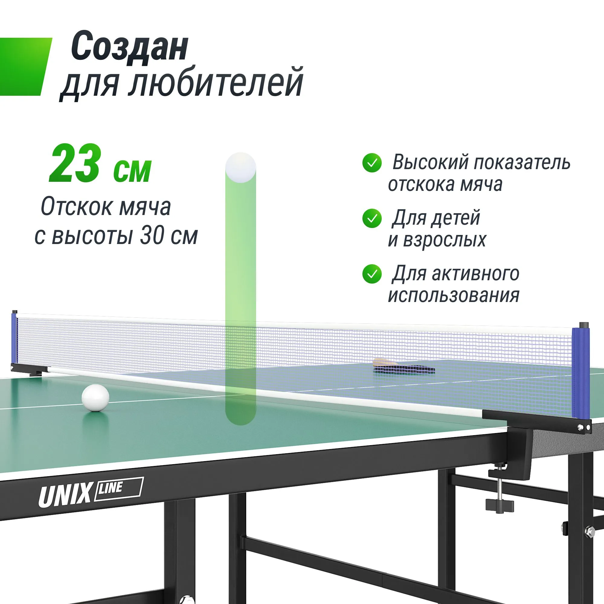 274 х 152,5 х 76 см (стандарт ITTF) |