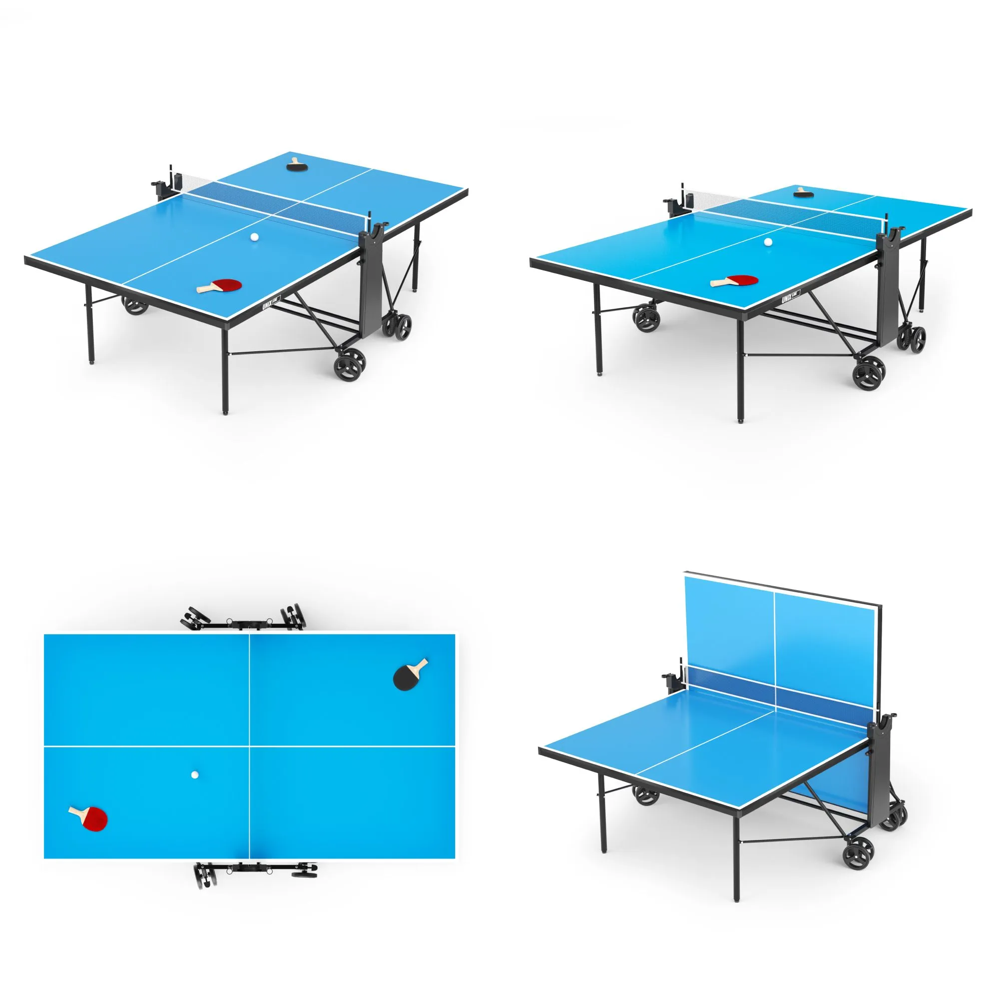 Компактный стол для пинг-понга UNIX Line Compact Outdoor станет прекрасным дополнением для игровых зон на улицах, в парках и общественных местах, а также для дач, загородных домов, школ и спортивных клубов. Он прекрасно подходит как для взрослых, так и для юных пользователей. В комплекте со столом идут 2 ракетки и 3 мяча, упакованные в удобный чехол и съемная сетка.
