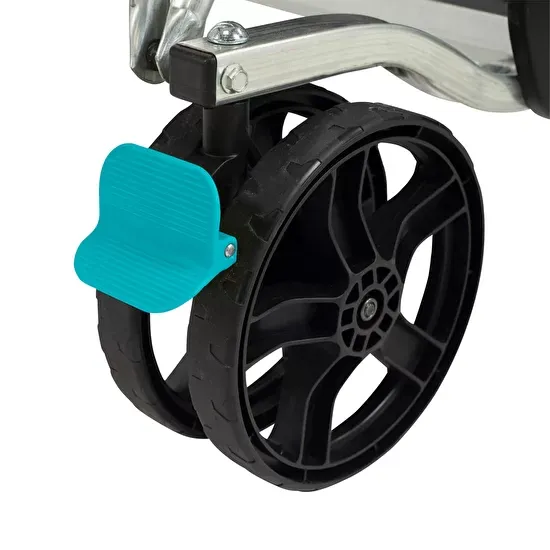 - Колеса: сдвоенные 200 x 32 mm c тормозным механизмом для двух пар