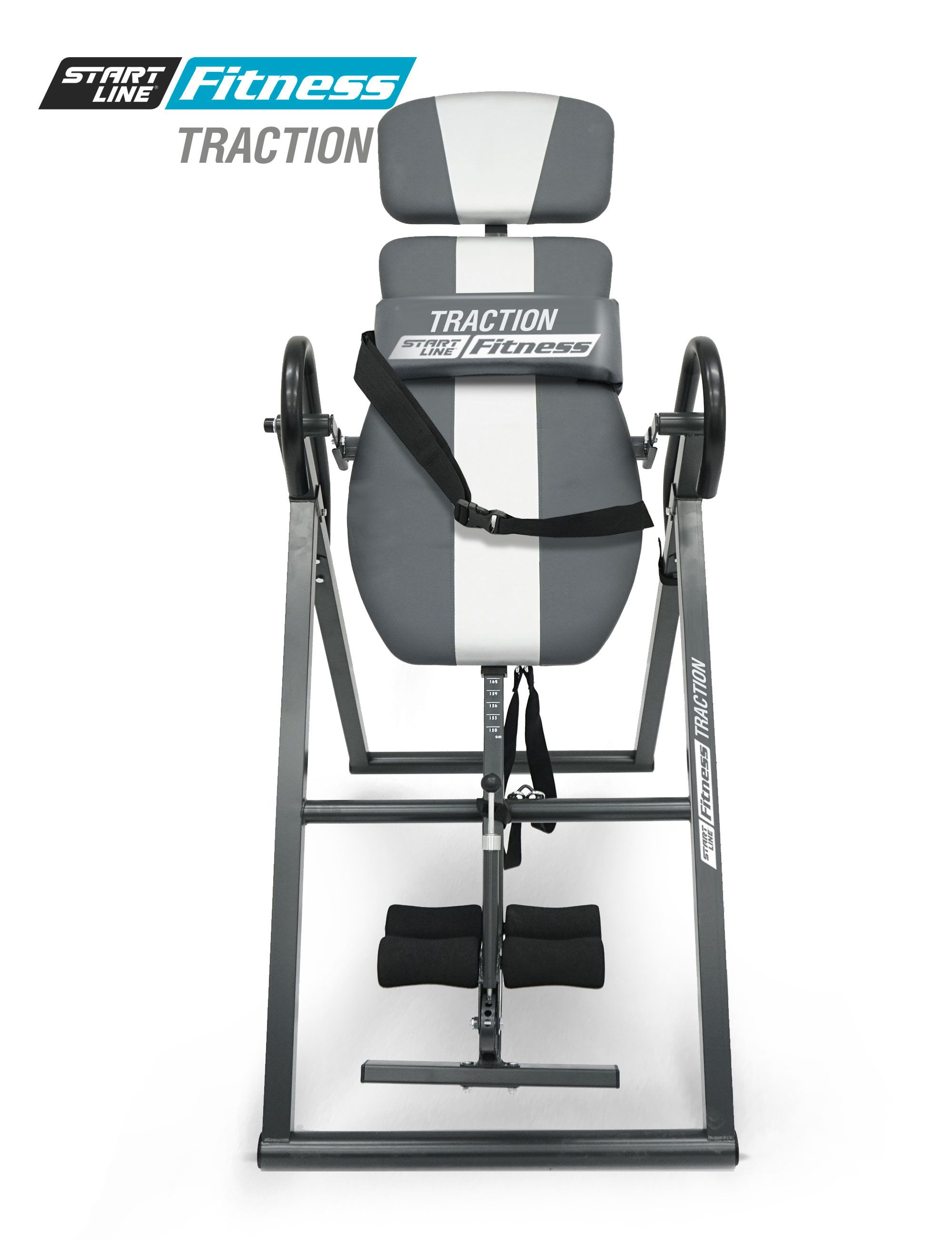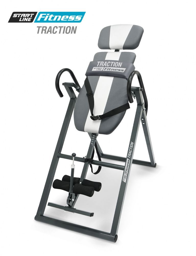 Инверсионный столnbsp;nbsp;Traction - новый ультрасовременный тренажер от Start Line Fitness в стильном дизайне, который станет идеальным дополнением любого интерьера. Стол максимально прост и удобен в сборке, так как рама инверсионного стола поставляется в сборе. Отличительной особенностью этого стола является наличие усиленной спинки, благодаря чему модель Traction абсолютно безопасна в использовании. Стол имеет прочную стальную конструкцию, поэтому может выдерживать максимальную нагрузку до 130 кг. Расширенные функциональные возможности этой модели дают эффективный способ облегчить боль в спине и улучшить осанку. Тренажер имеет складную конструкцию с системой фиксации в сложенном виде, что позволяет легко перемещать его с места на место и удобно хранить. Инверсионный стол оснащен мягкой сверхпрочной спинкой для комфортной тренировки. Обивка спинки изготовлена из износостойкой и долговечной экокожи.nbsp;nbsp;Важным дополнением модели Traction является удобная съемная подушка, которая позволяет правильно распределить и уменьшить нагрузку на мышцы спины. Заниматься инверсионной терапией на столе Traction могут как подростки, так и взрослые, ведь уровень роста регулируется от 150 до 197 см. Ограничение угла наклона осуществляется с помощью двух ремней, позволяющих выставить оптимальный угол для тренировки. При возврате в исходное положение энергоемкий амортизатор поглощает удар об опорную часть. Инверсионный стол Traction оснащен надежной системой крепления ног. Фиксация происходит в одно касание, а мягкие валики исключают любые дискомфортные ощущения во время тренировки, надежно закрепляя голени.nbsp;nbsp;Модель оборудована ремнем, позволяющим при необходимости надежно зафиксировать положение тела, а также боковыми эргономичными ручками, которые обеспечивают безопасность и комфорт во время эксплуатации. Инверсионный стол Traction - идеальное сочетание исключительной надежности и прочности конструкции, компактности и современного дизайна.