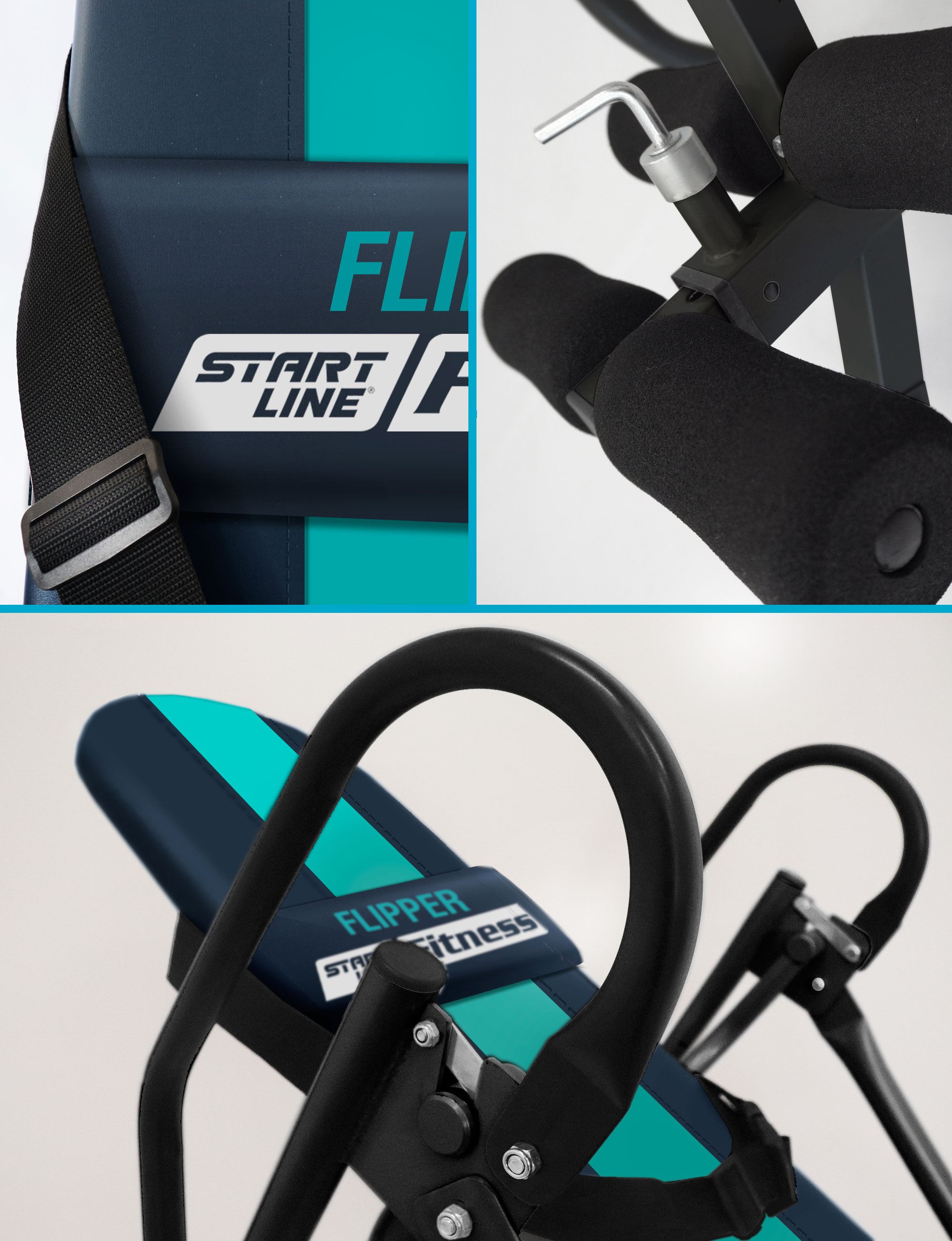 FLIPPER имеет простые настройки под рост и регулировку положений. Обивка спинки изготавливается из износостойких материалов. Удобная и простая система регулировки угла наклона ремнем позволяет настроить оптимальный угол для занятий.