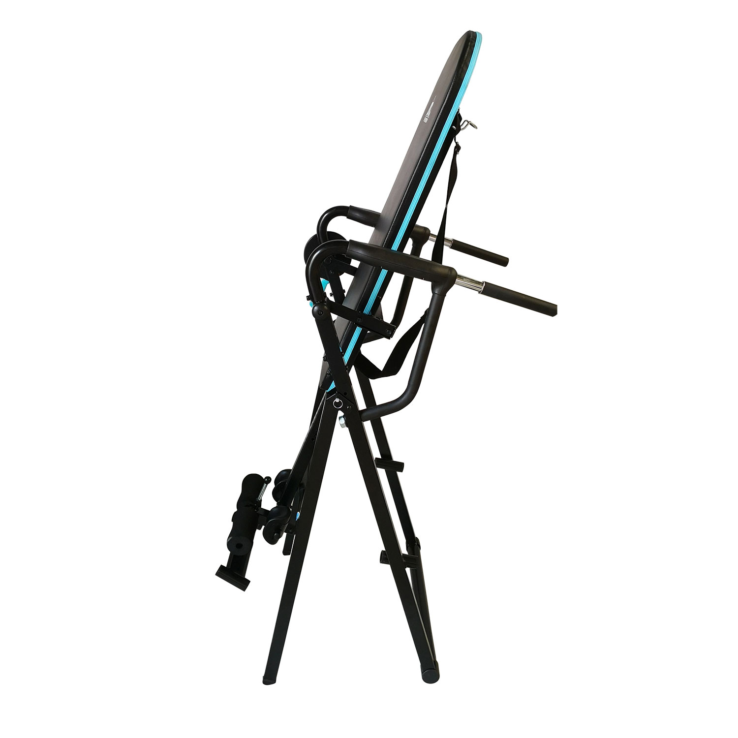 Представляем уникальный инверсионный стол для домашнего применения. Модель "6-в-1". Данная модель стола позволяет выполнять следующие упражнения: - инверсия - подтягивания на турнике - отжимания на брусьях - подъем ног к туловищу - отжимания из положения лежа - отжимания из положения сидя В комплекте со столом идут две удобные универсальные ручки, которые необходимо вставить в посадочные трубки перед выполнением нужного упражнения. Для фиксации инверсионного стола в нужном положении справа установлен замок с ручкой, который имеет два положения: открыт - закрыт. В открытом положении стол свободно вращается. В закрытом положении замок фиксирует стол абсолютно в любом положении. Очень удобно. Стойка для ног регулируется под рост пользователя в диапазоне от 160 до 190 см. Ноги фиксируются с помощью удобных валиков и мягких упоров. Рама стола изготовлена из высококачественного стального профиля. Складная конструкция. Удобная мягкая спинка. Ремень безопасности.