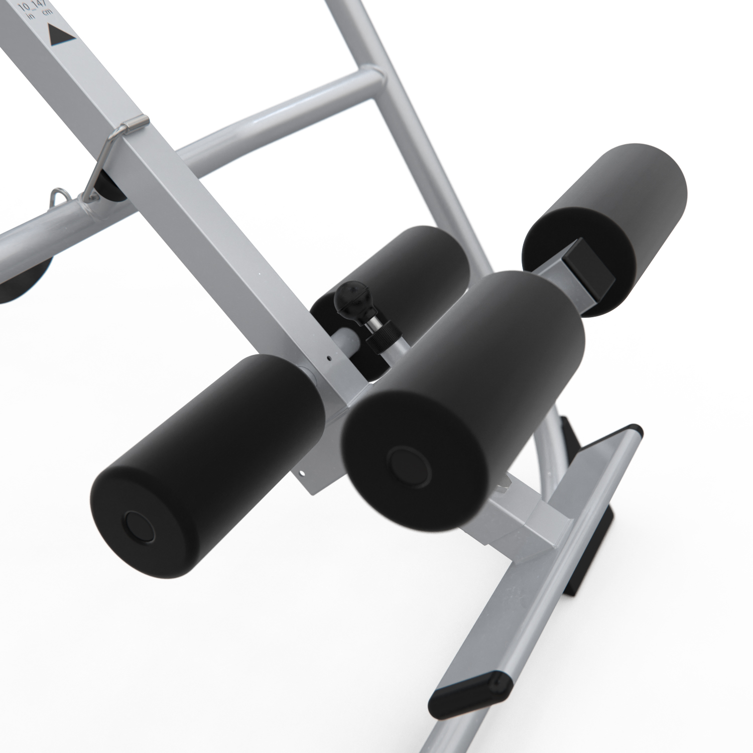 Стол позволяет зафиксировать нужный угол наклона с помощью ремня и перекладины. До начала занятия наклоните стол до нужного уровня и подтяните ремень. Если снять ограничительную перекладину, то возможно отклонится в вертикальное положение (головой в пол).