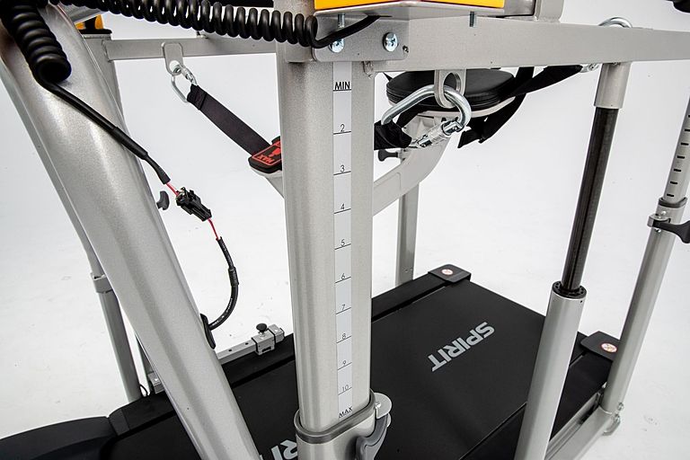 Конструкция с инфракрасным датчиком дает возможность пользователям тренироваться исходя из своих физических возможностей, отслеживая положение тела пациента на беговой дорожке, контролируя длину шага от 5 до 30 см, обеспечивая тем самым максимальную безопасность и уверенность пользователя во время занятий. Беговая дорожка LW650 позволяет изменять высоту боковых поручней в вертикальной плоскости. Начальная скорость от 0,2 до 8 км/ч с шагом в 0,1 км/ч, предусмотрен реверс со скоростью от 0,2 до 2 км/ч. Реабилитационная дорожка LW650 оснащена надежным запатентованным подвесным сидением с регулировкой по высоте от 120 до 180 см для дополнительной безопасности, которое дает возможность пользователям выполнять упражнения в сидячем положении, а также если пользователь испытывает дискомфорт во время тренировки в нижней части тела, то можно просто присесть и отдохнуть. Подъем и спуск с тренажера не требуют усилий и безопасен благодаря его длинным поручням. Проведя ряд исследований на беговой дорожке Spirit LW650 практически во всех случаях наблюдалось значительное увеличение мышечной силы, улучшение равновесия и общего тонуса пациента.