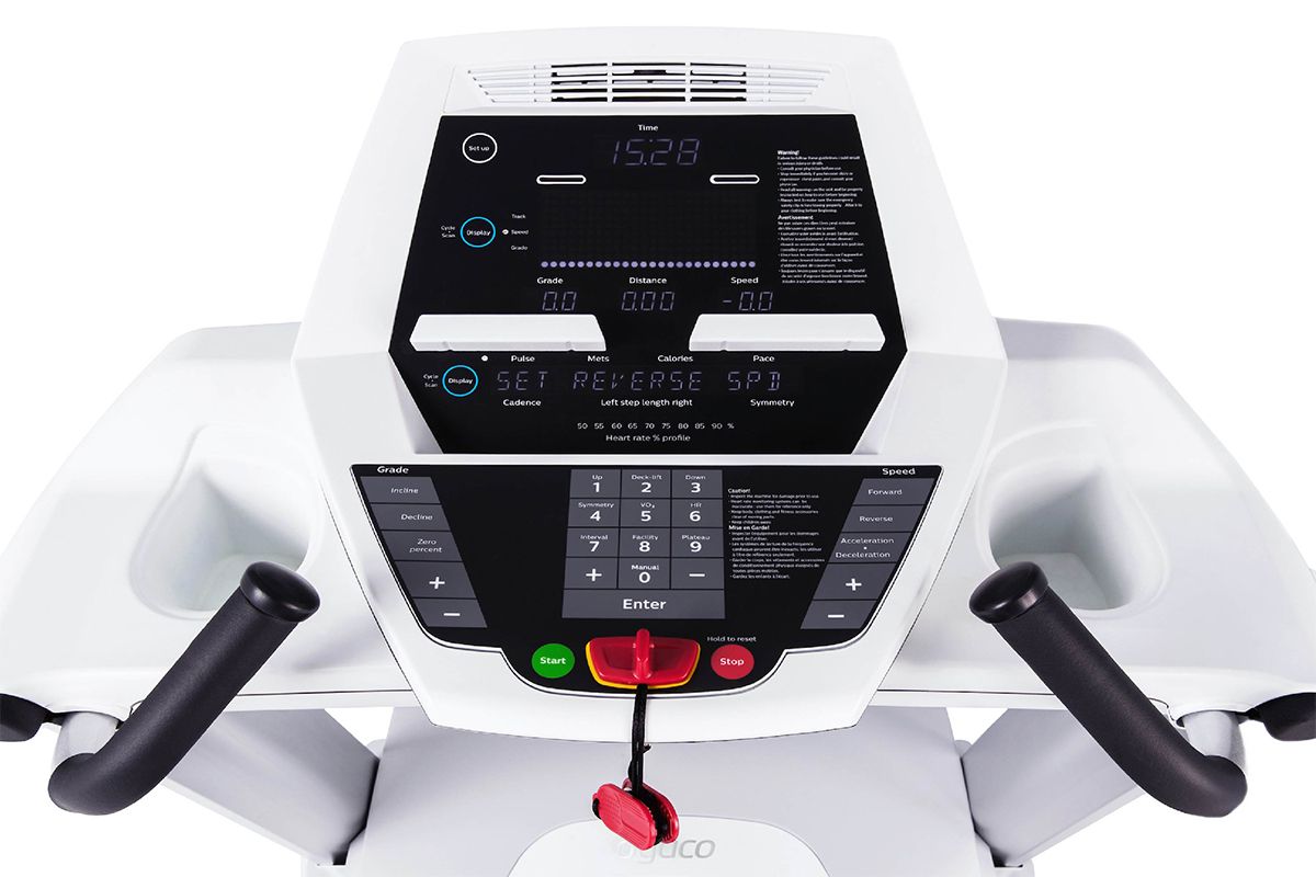 Беговая дорожка оснащена интуитивно понятной светодиодной консолью с четким матричным 20-ти символьным дисплеем и простыми в использовании элементами управления, что повышает удобство использования и позволяет отслеживать результаты. Благодаря предустановленным программам и мониторингу сердечного ритма пользователи могут эффективно достигать своих целей в восстановлении и реабилитации.
