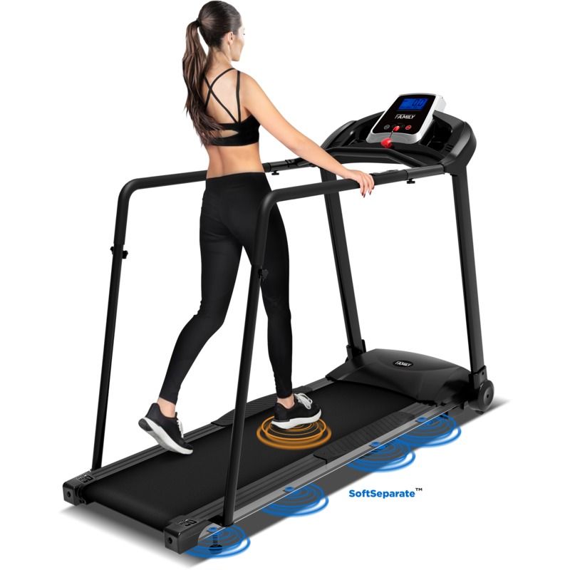 Модель Family TM 250R это специализированная электрическая беговая дорожка для домашней реабилитации или для занятий ходьбой, оборудована усиленными поручнями вдоль всего тренажера для комфорта и безопасности пользователей с ограниченными возможностями, возрастных пользователей или после травмирования. Надежный двигатель обеспечивает стабильный ход, поддерживает скорость от 0.3 до 6 км/ч, беговое полотно 400 х 1220 мм рассчитаны на удобный медленный шаг или длительные прогулки средней скорости. Амортизация SoftSeparate™ состоит из 8 эластомеров по периметру, 2-х типов жёсткости, они создают естественную амортизацию, оптимальную для ходьбы, обеспечивая безопасность суставов и комфорт движения. Качественная ламинированная дека 16 мм и прочная рама рассчитаны для пользователей весом до 100 кг.