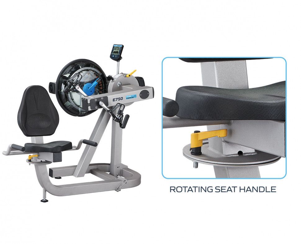 - В мульти тренажере E750 Cycle UBE используется запатентованная система регулировки водного сопротивления с 10 уровнями нагрузки Fluid Technology.
